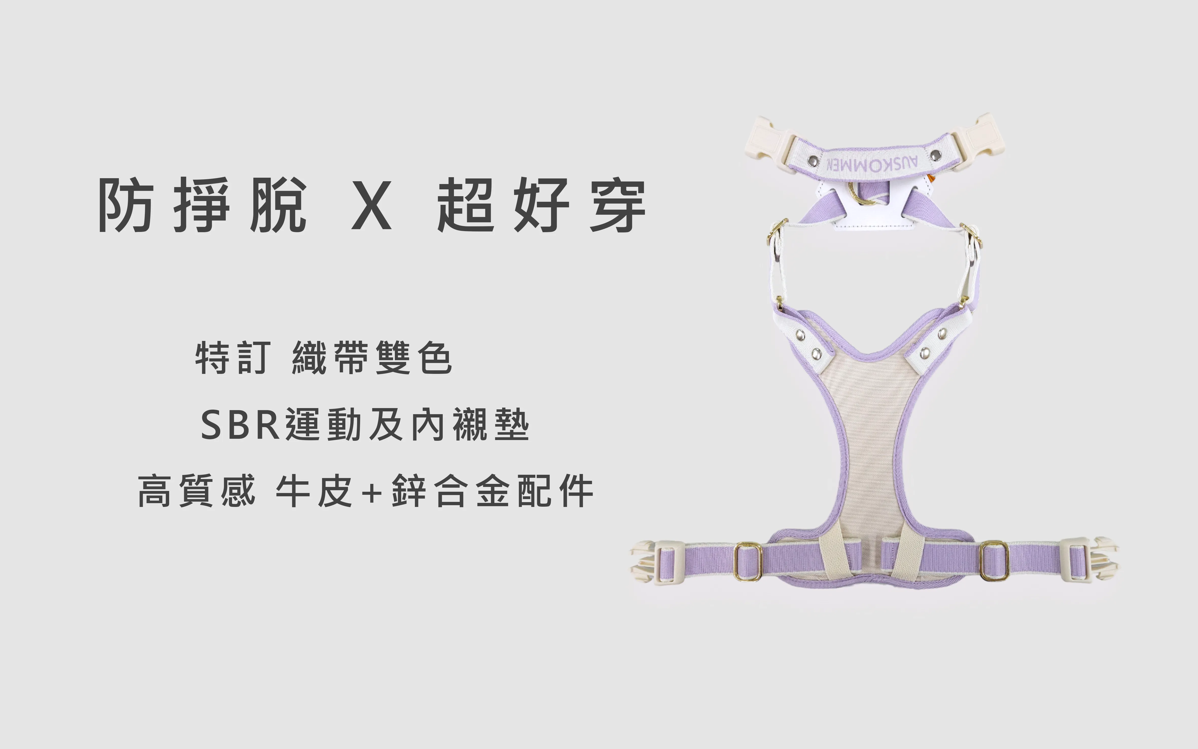台灣 AUSKOMMEN 狗狗X型胸背帶 - 粉霧紫 M M+ L [A4201]