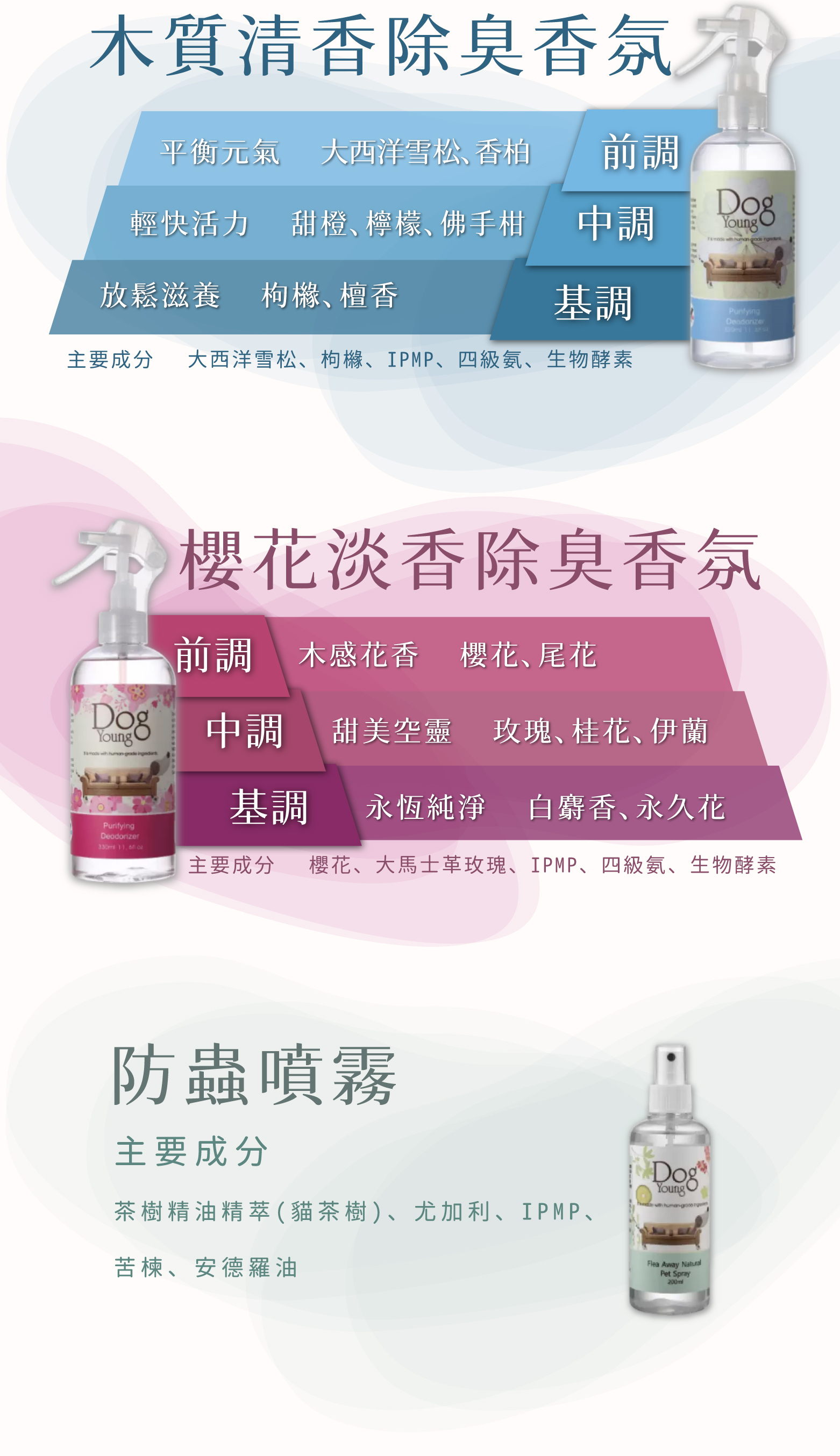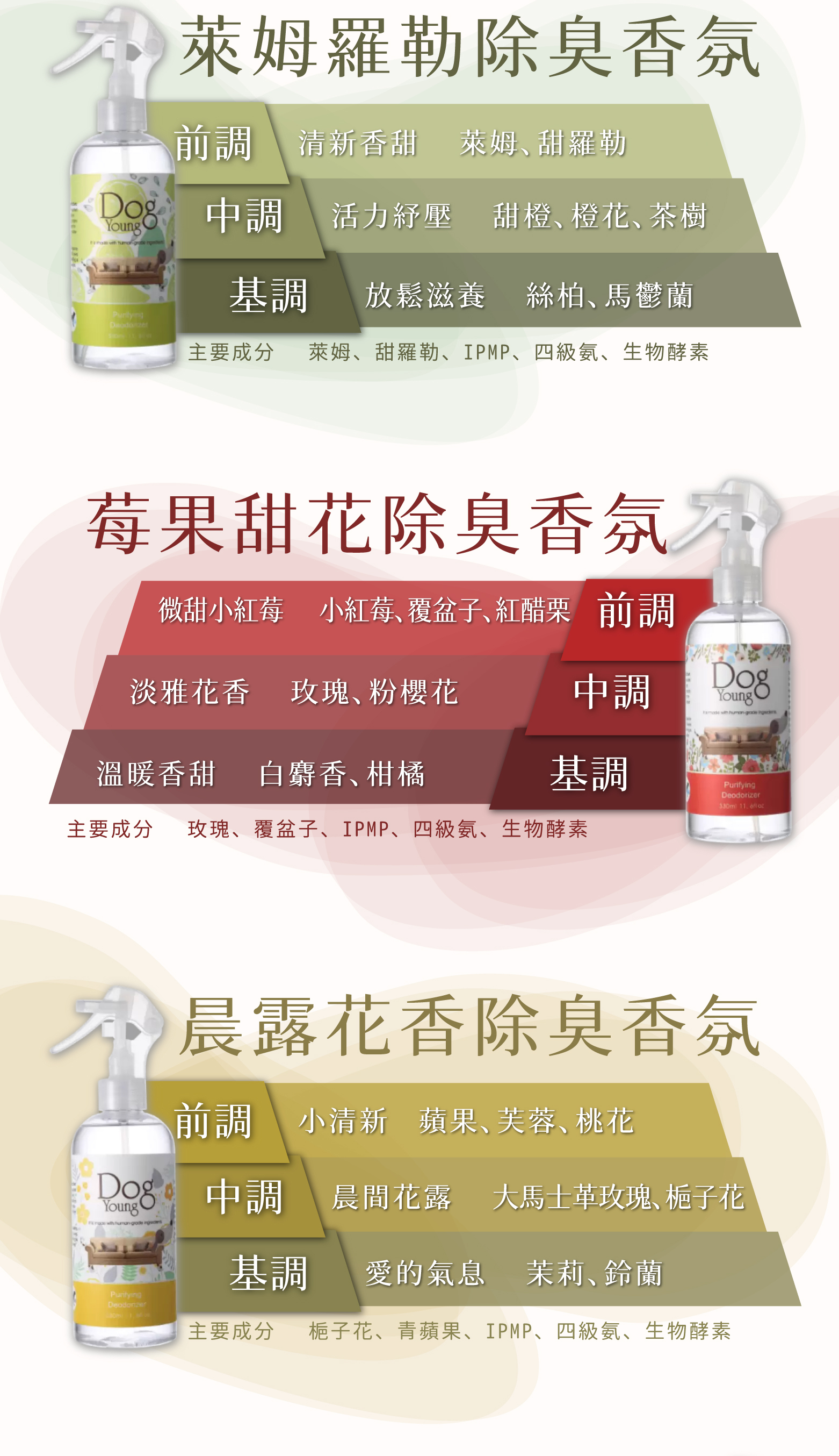 主要成分 櫻花、大馬士革玫瑰、IPMP、四級氨、生物酵素