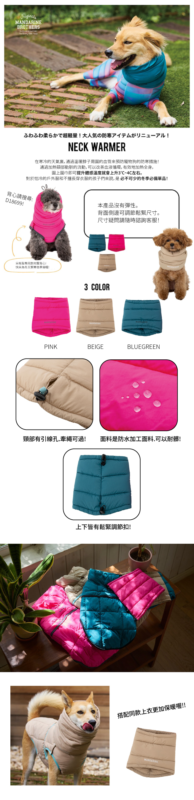 | 特徵 | 防水布料製成.保暖頸部使用 |