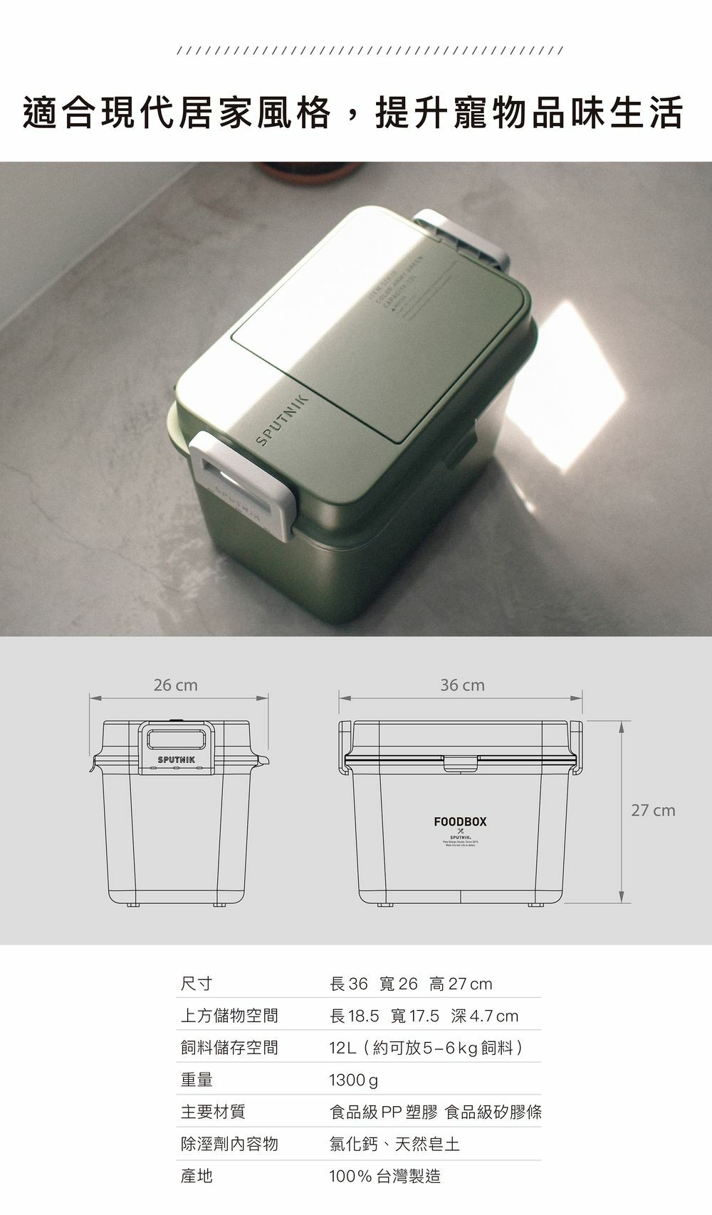 飼料儲存空間:12L (約可放5-6kg飼料)