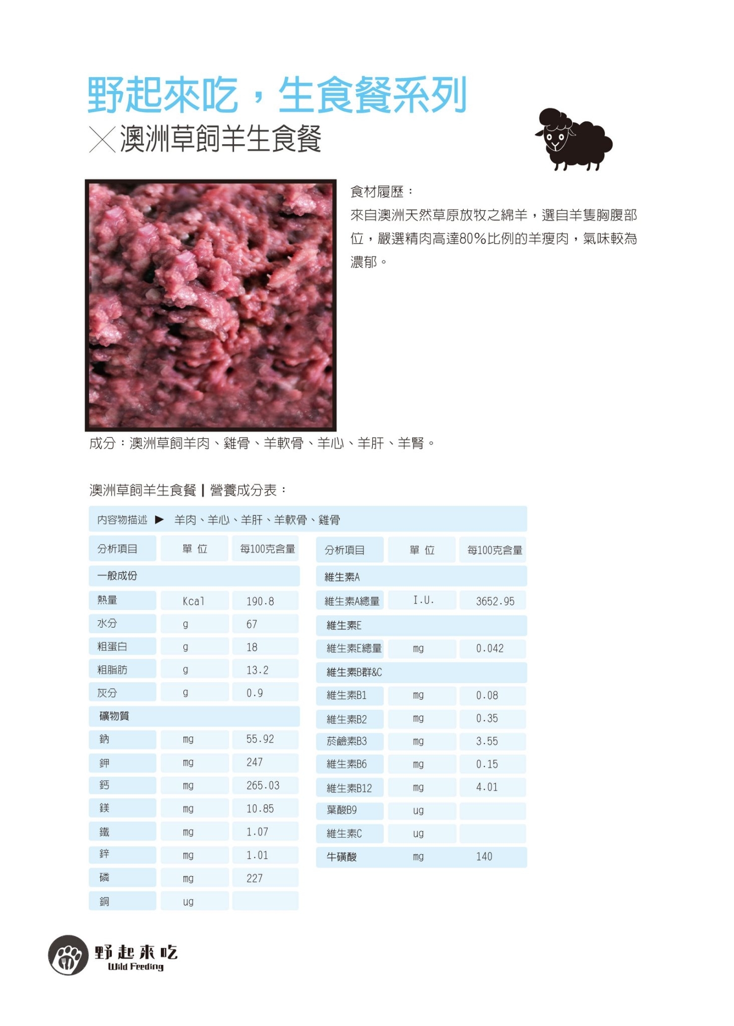 澳洲草飼羊肉:澳洲羊肉、雞骨、羊軟骨、羊心、羊肝、羊腎