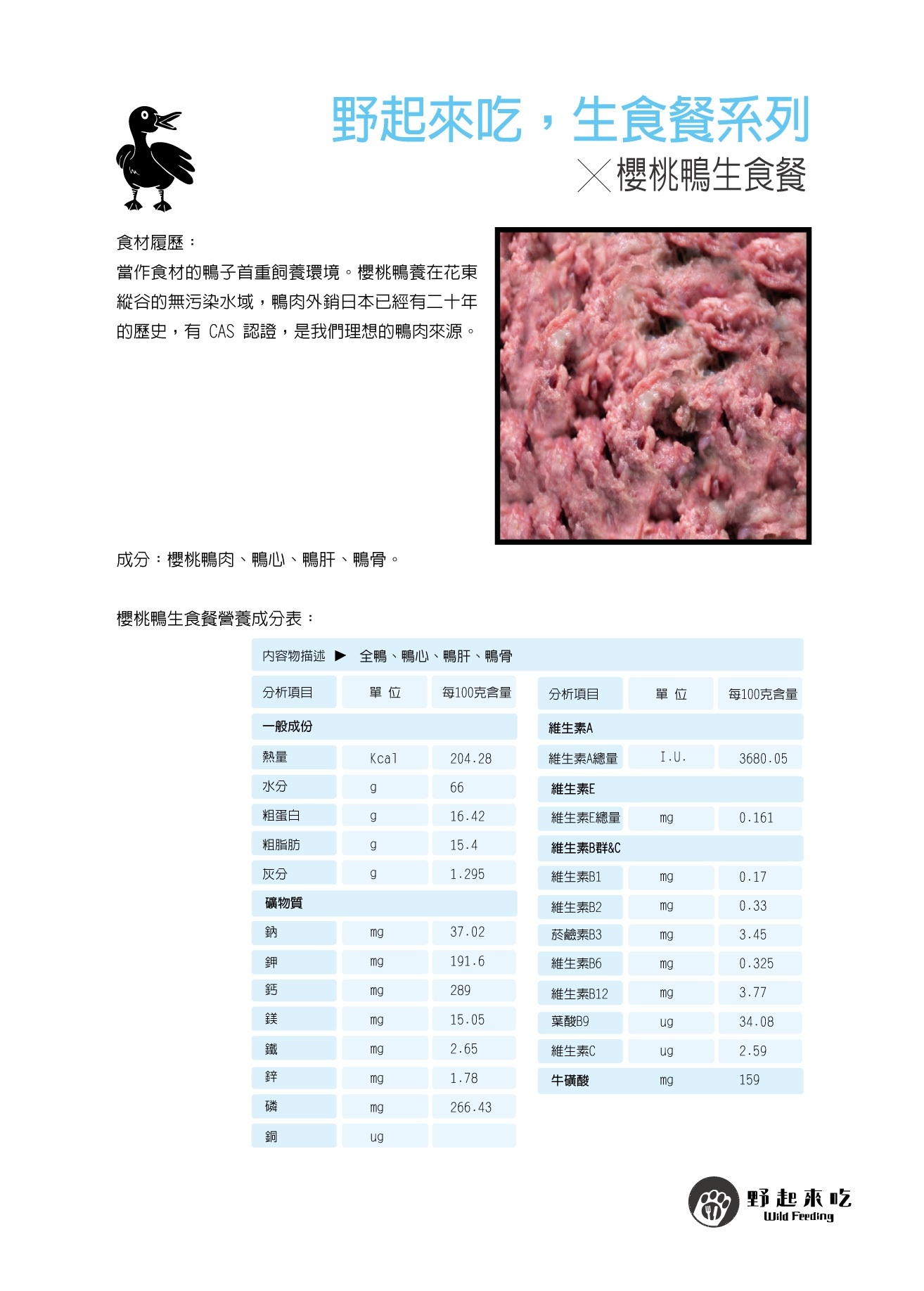 櫻桃鴨:櫻桃鴨肉、鴨心、鴨肝、鴨骨