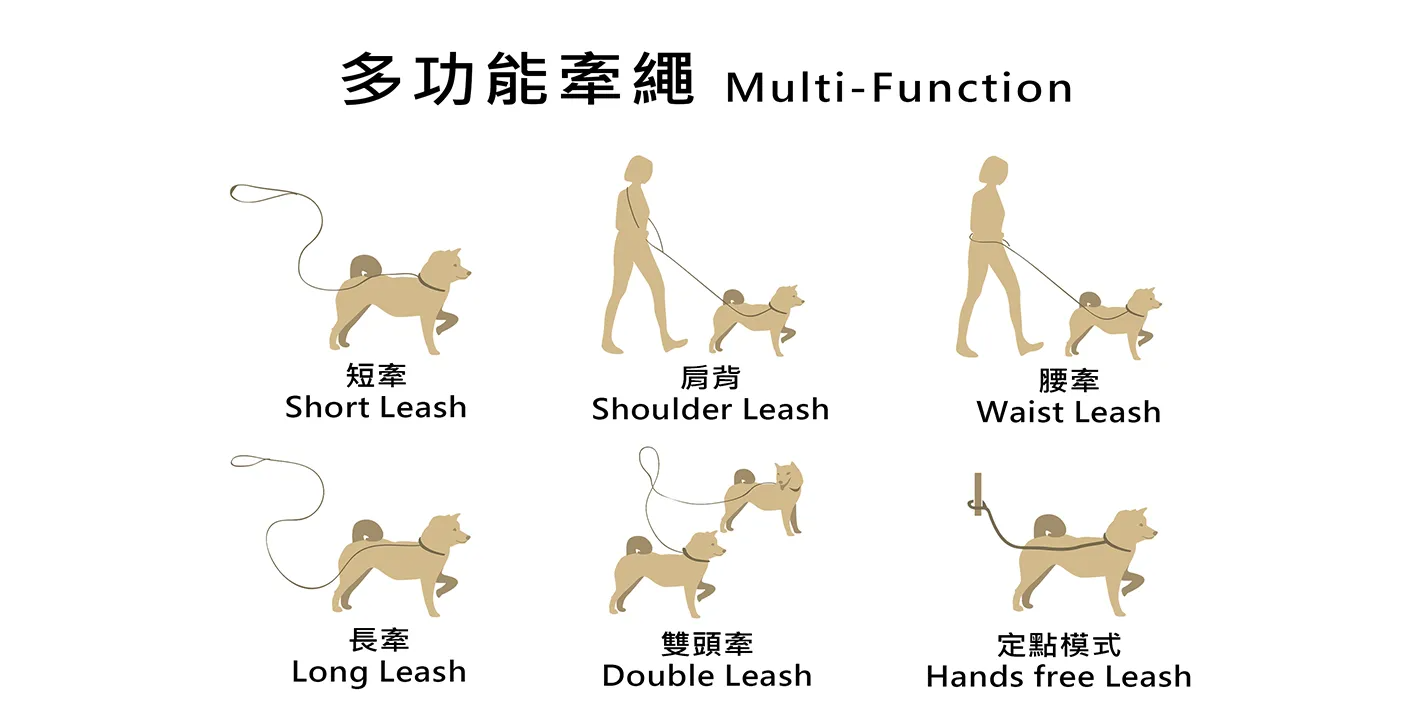 雙頭扣環設計:可同時牽引兩隻小型毛孩,外出更高效。