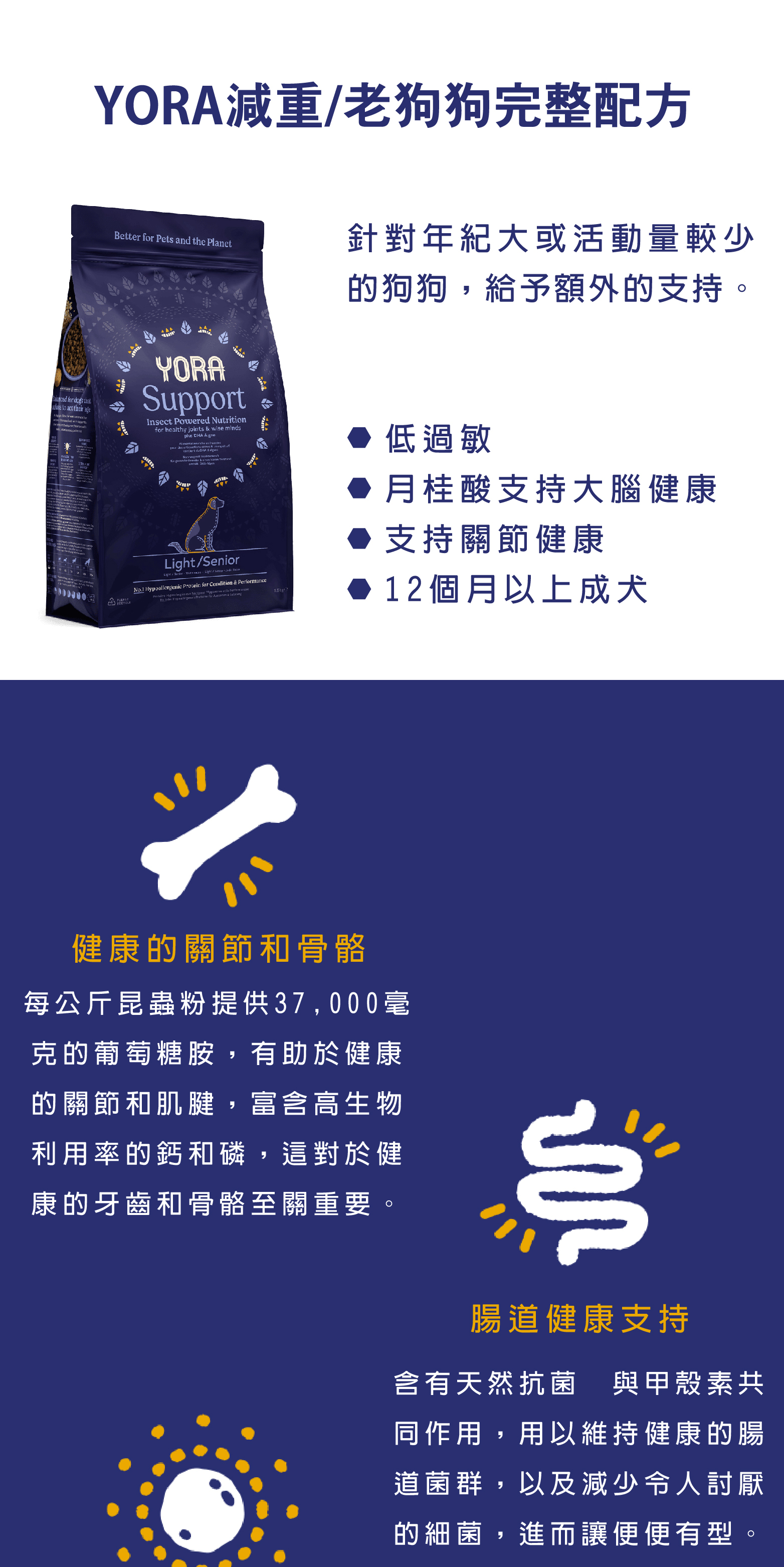 針對年紀大或活動量較少的狗狗,給予額外的支持,其中配方中減少了18%的脂肪含量。