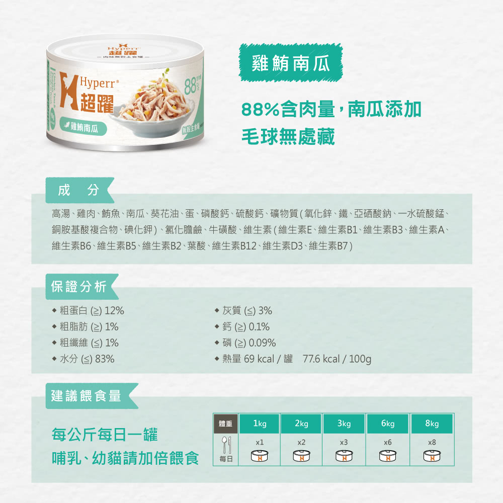 台灣 Hyperr超躍 貓咪 無穀主食罐 - 雞鮪南瓜 90g [F2132]