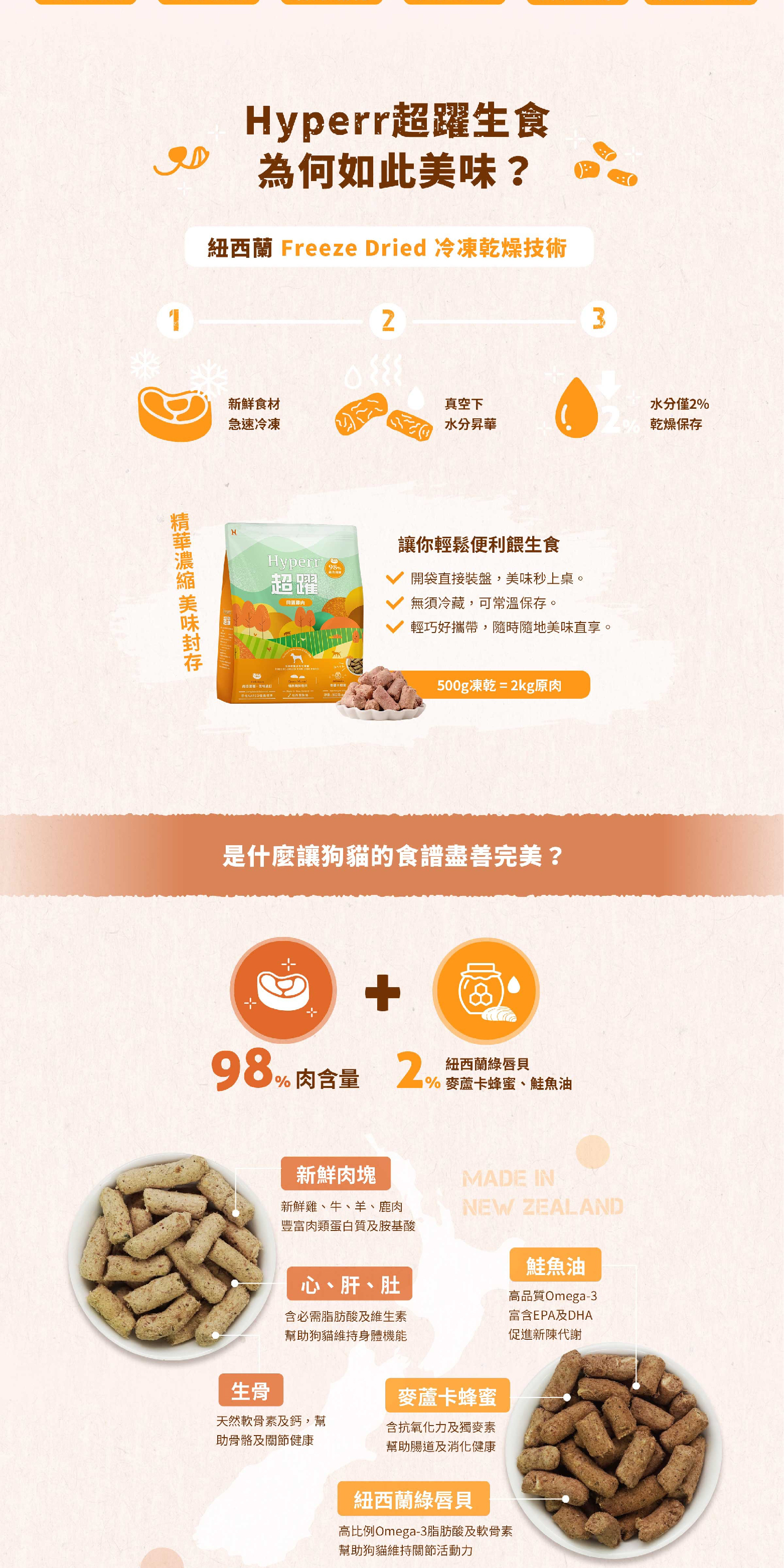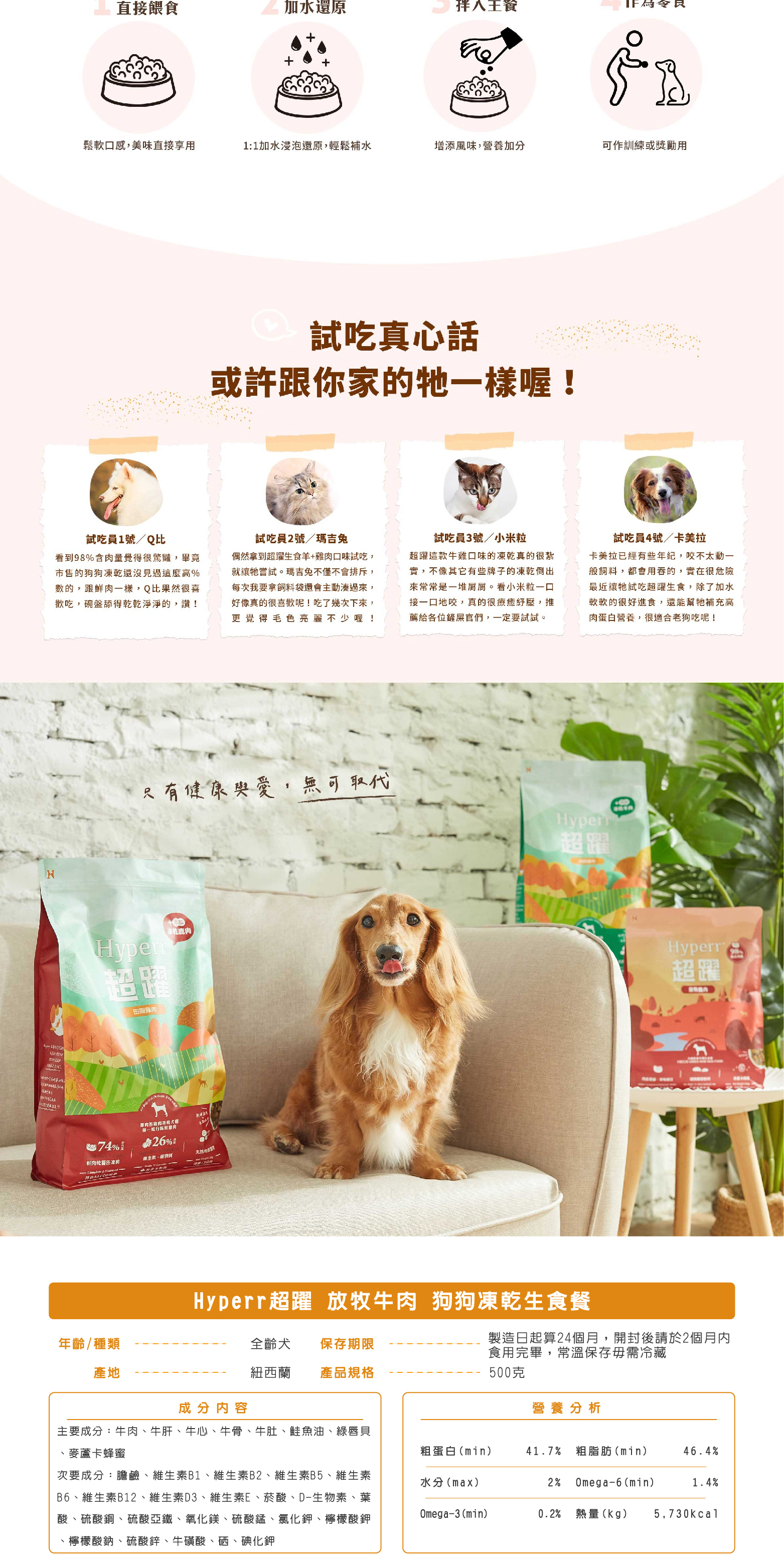 台灣 Hyperr超躍 狗狗 凍乾生食餐-原野牛肉 500g [S552]