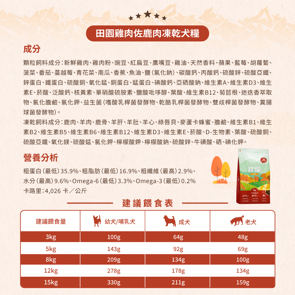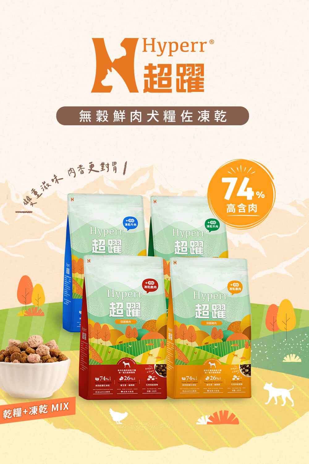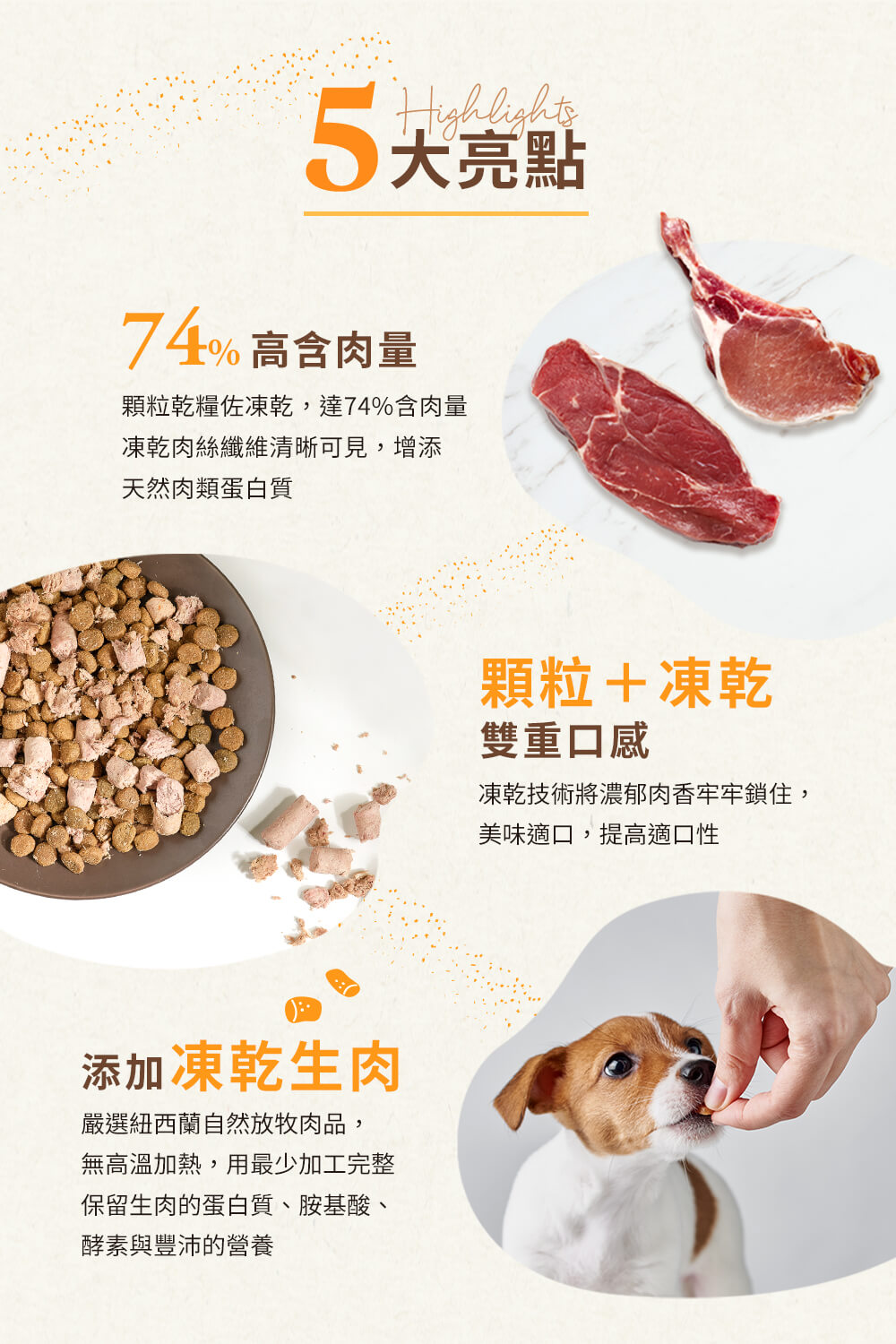 ・74%高含肉量,新鮮肉塊X當季蔬果,無穀無人工添加