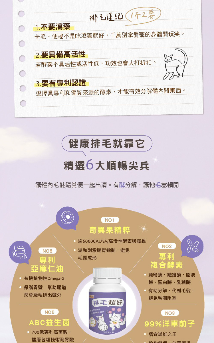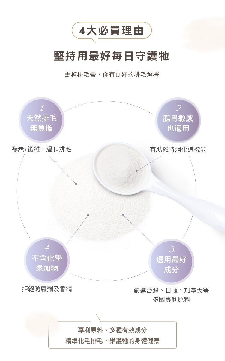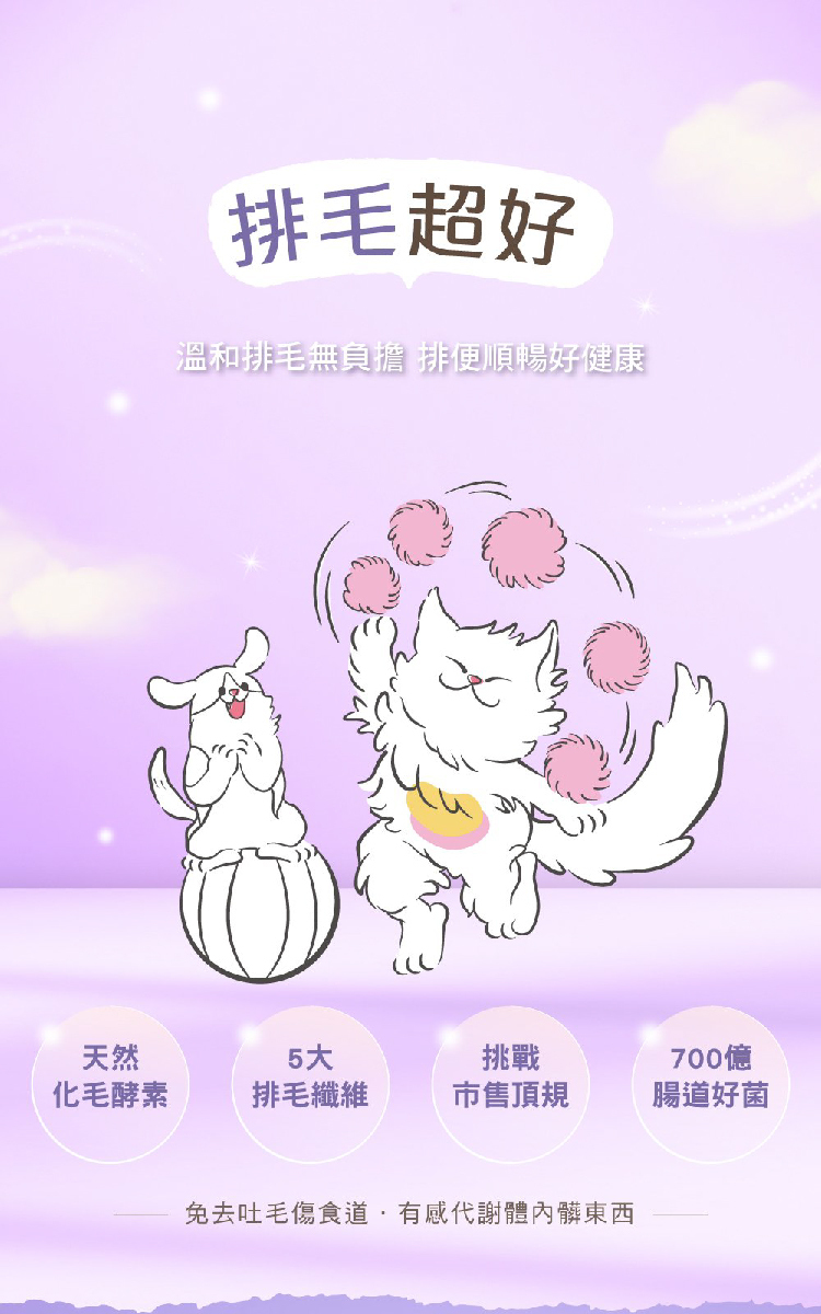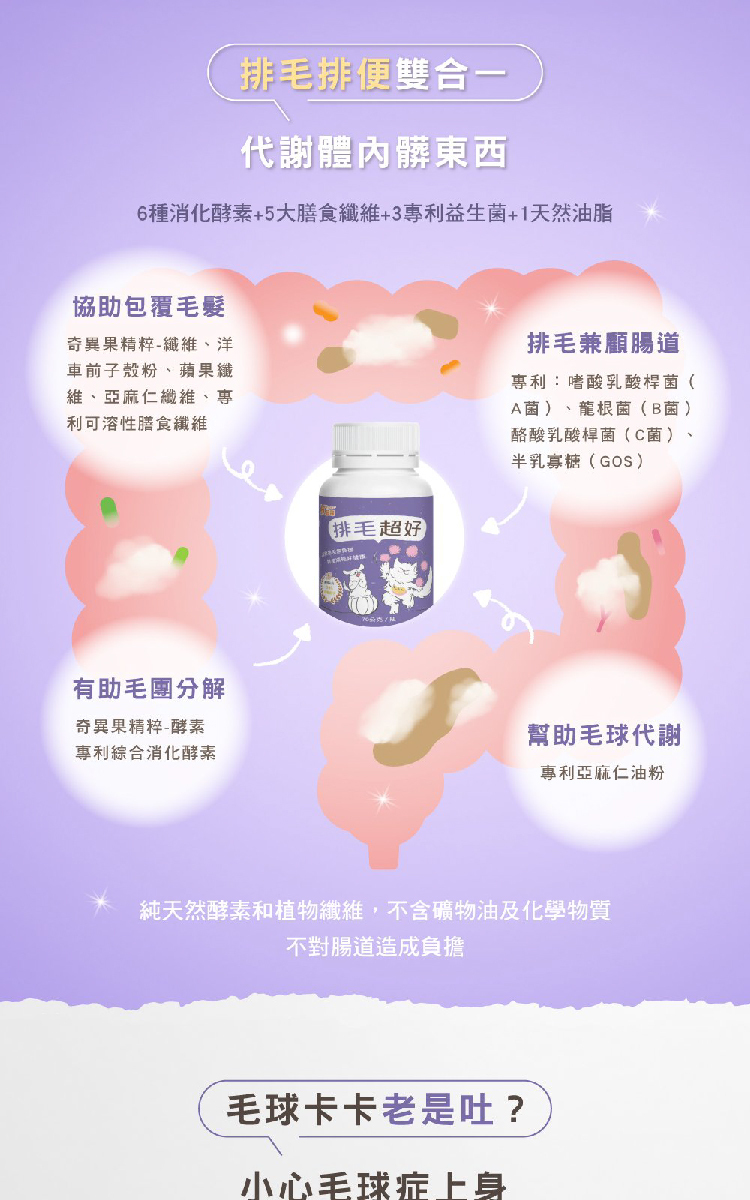 添加專利亞麻仁油粉,有感包覆體內毛髮,