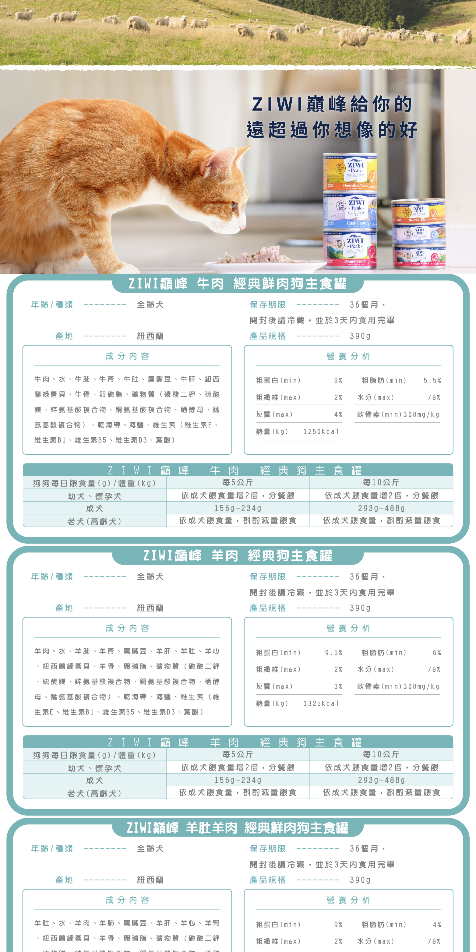 ZIWI 巔峰 經典系列 - 92%鮮肉狗罐 羊肉 390g [F270]