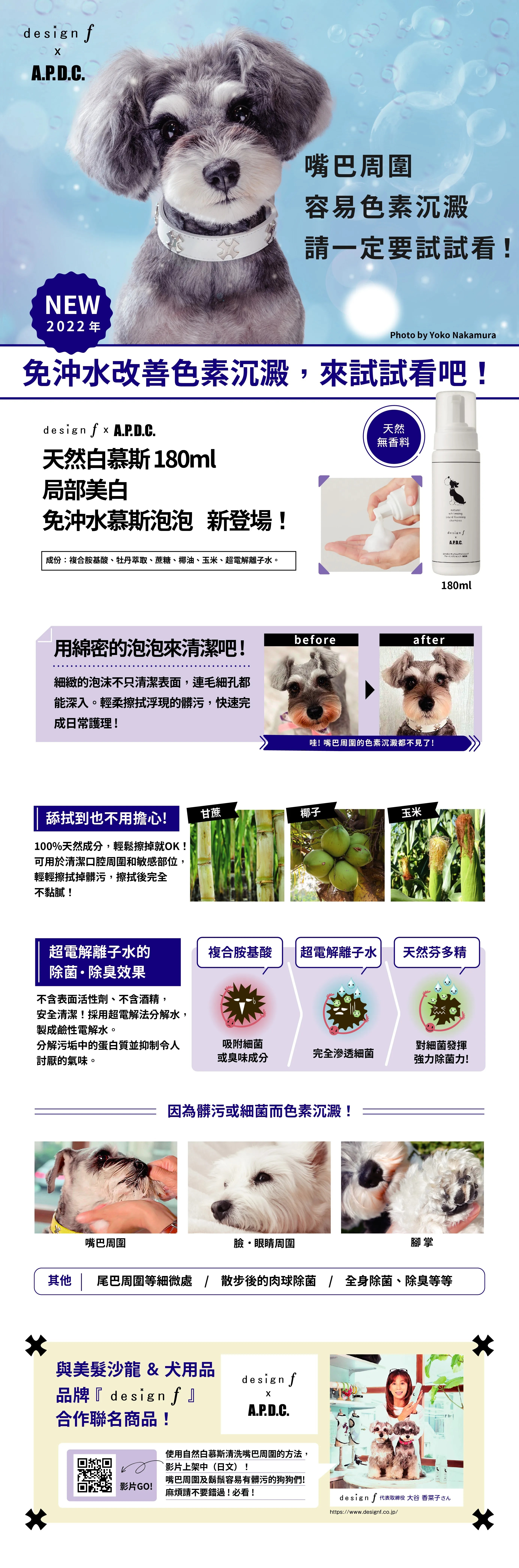 【A.P.D.C.】犬用 自然白慕斯 180ml [C070]