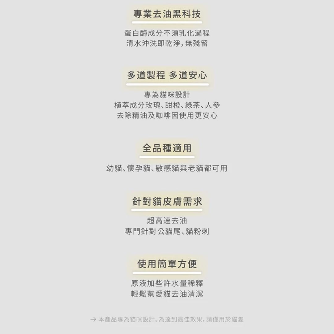 ※本產品雖已排除多項會危害貓隻的風險,但任何清潔用品皆有極低機率的不適反應,請依照個別情況調整使用。