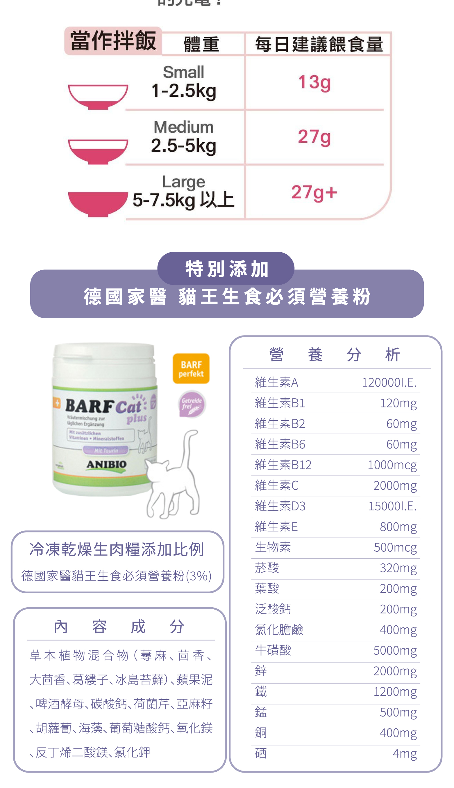 【特別添加:德國家醫-貓王生食必須營養粉】