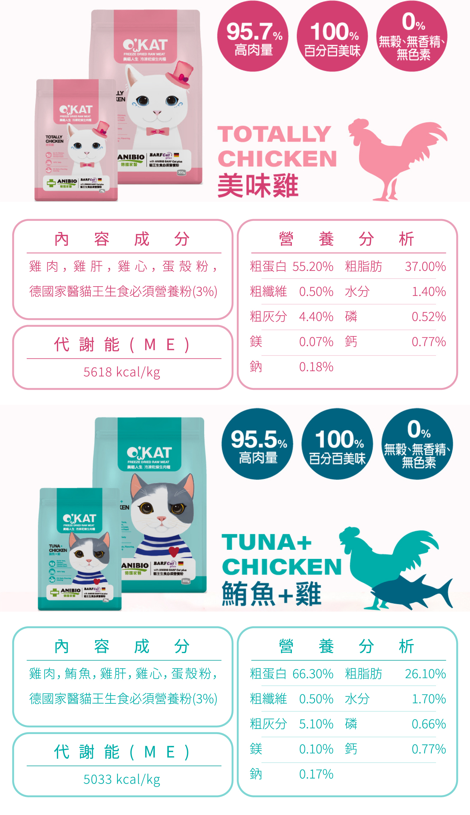 台灣 O'KAT 美喵人生 冷凍乾燥生肉糧 鮪魚+雞 - 300g []