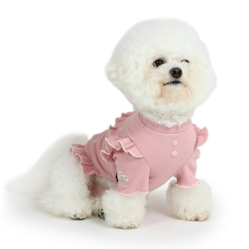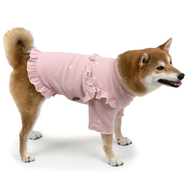 日本 PetParadise 刺繡小菊花荷葉邊發熱衣連身裙 [D18353] 另有SM