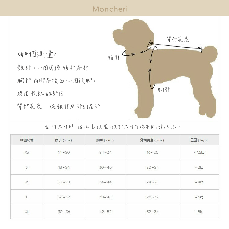 脖圍大約34-38 / 大約38-4(厘米)胸圍大約36-41 / 大約39-48(厘米)身體側長13 / 15(CM)估計重量~3 / ~6(kg)