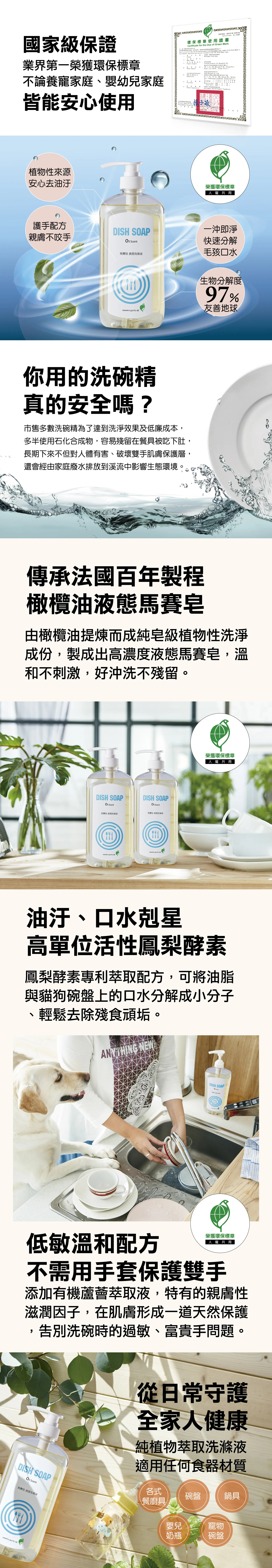 【人寵共用&友善環境】水魔素馬賽皂食器洗滌酵素適合全家人與寵物碗盤清潔,