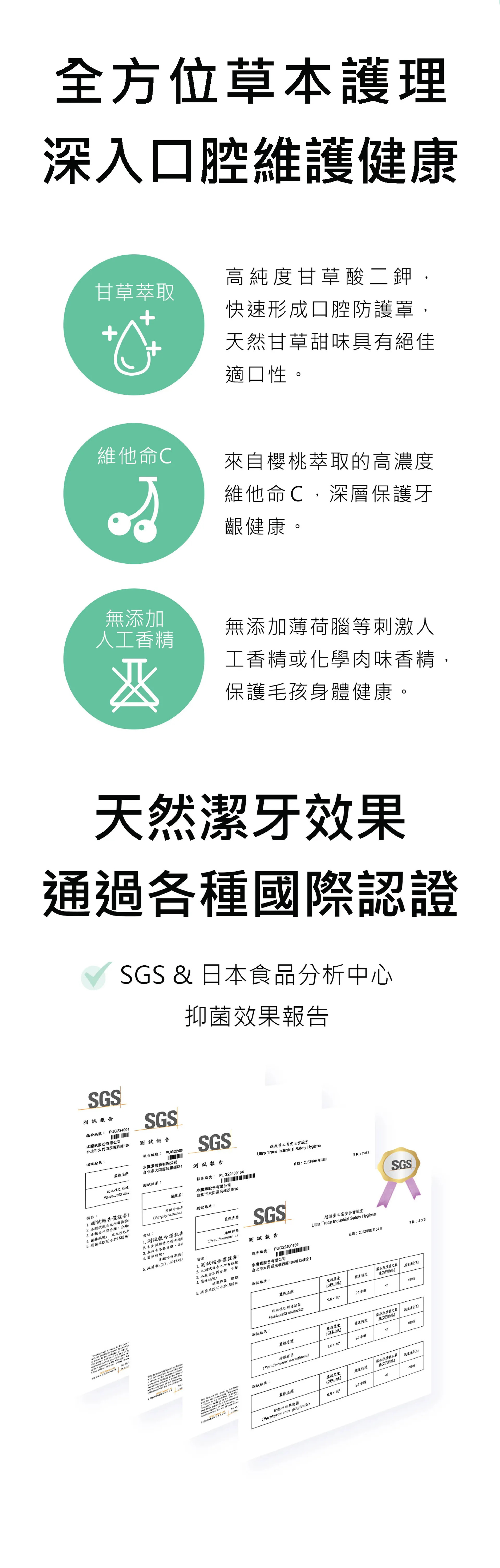 並通過SGS國際認證與日本研究證實有效降低貓口臭及牙菌斑孳生