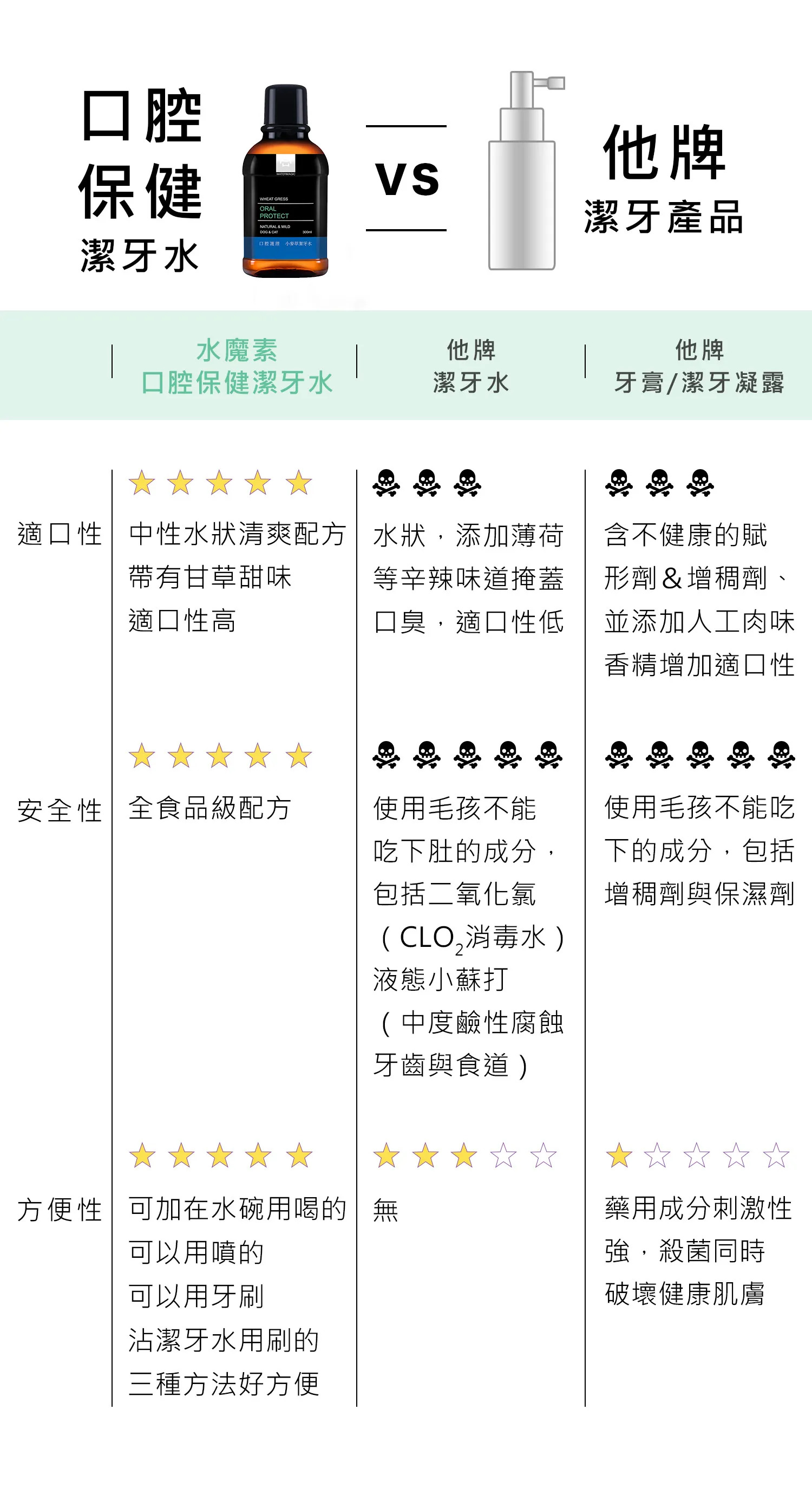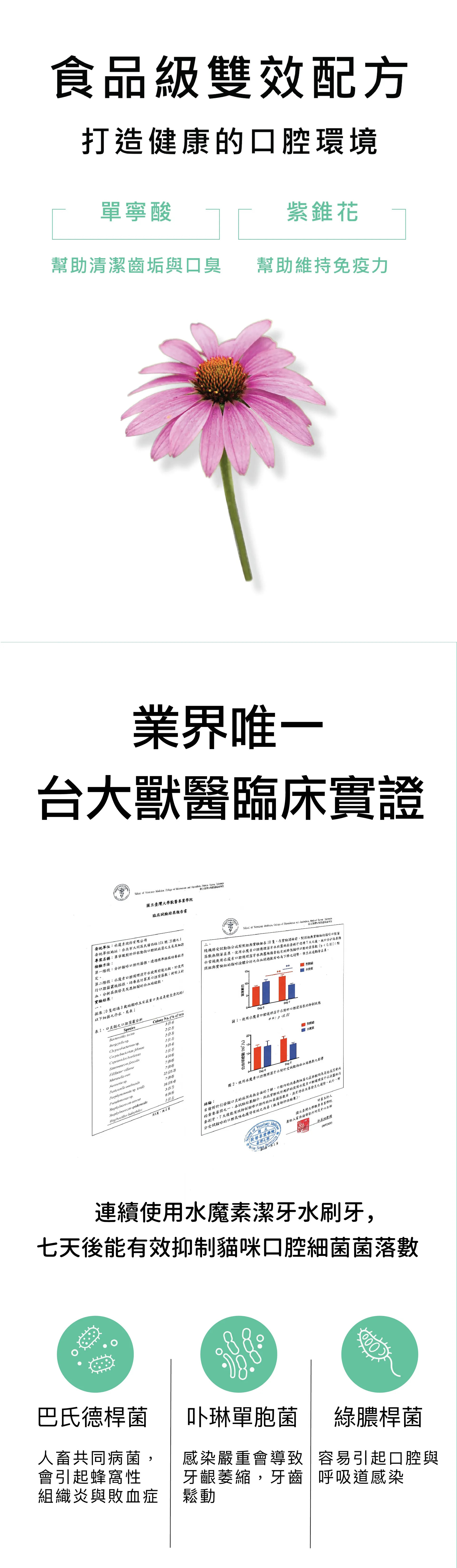 水魔素針對貓咪狗狗潔牙首創「單寧酸+紫錐花」雙效護理配方