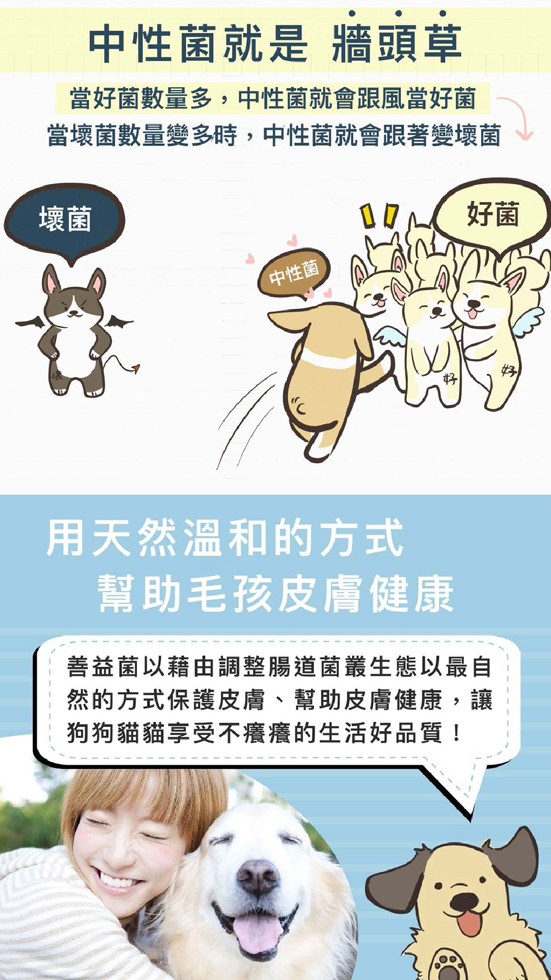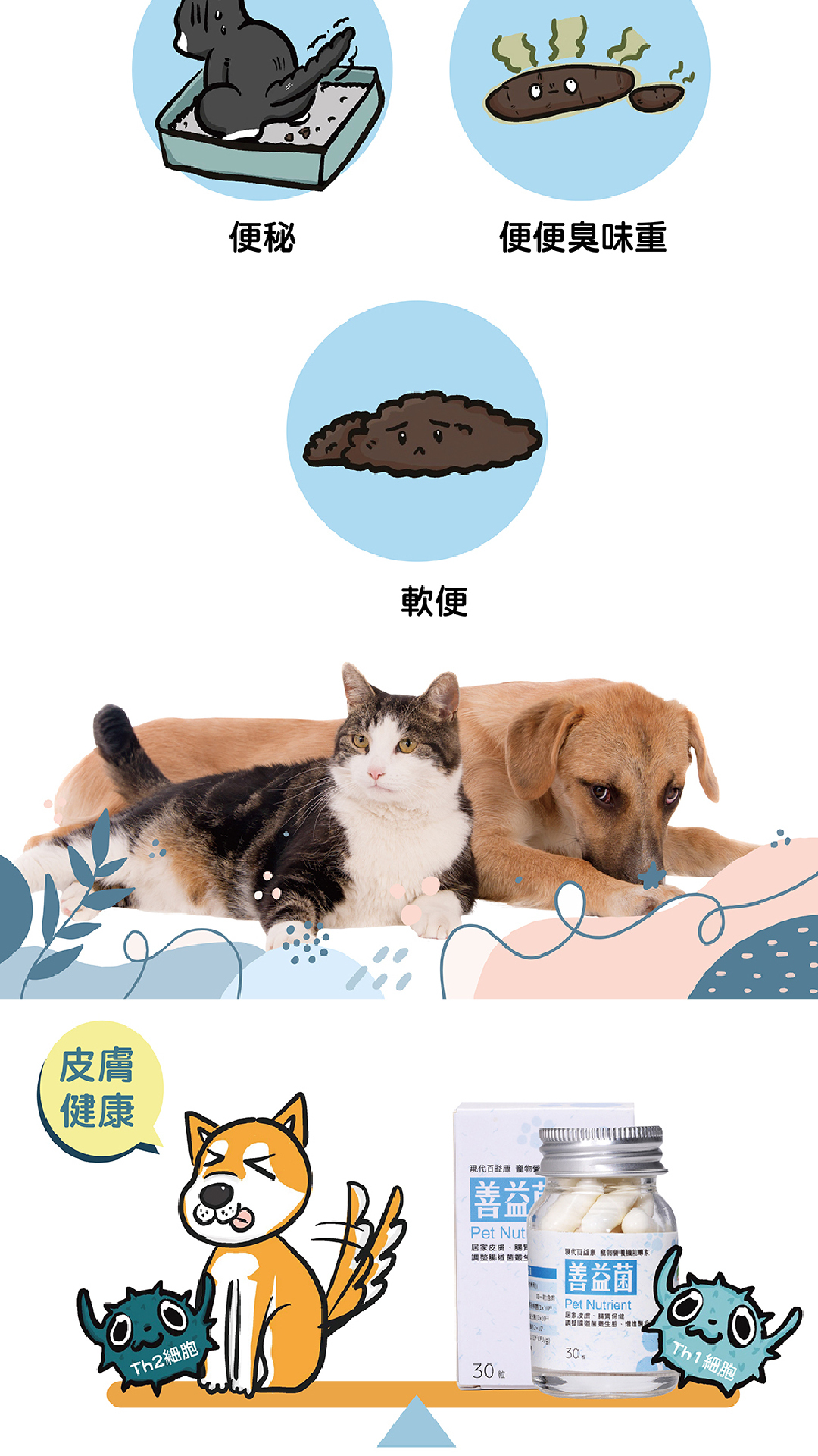 善益菌藉由調整腸道菌叢生態,以最自然方式讓狗貓做好腸胃保健!