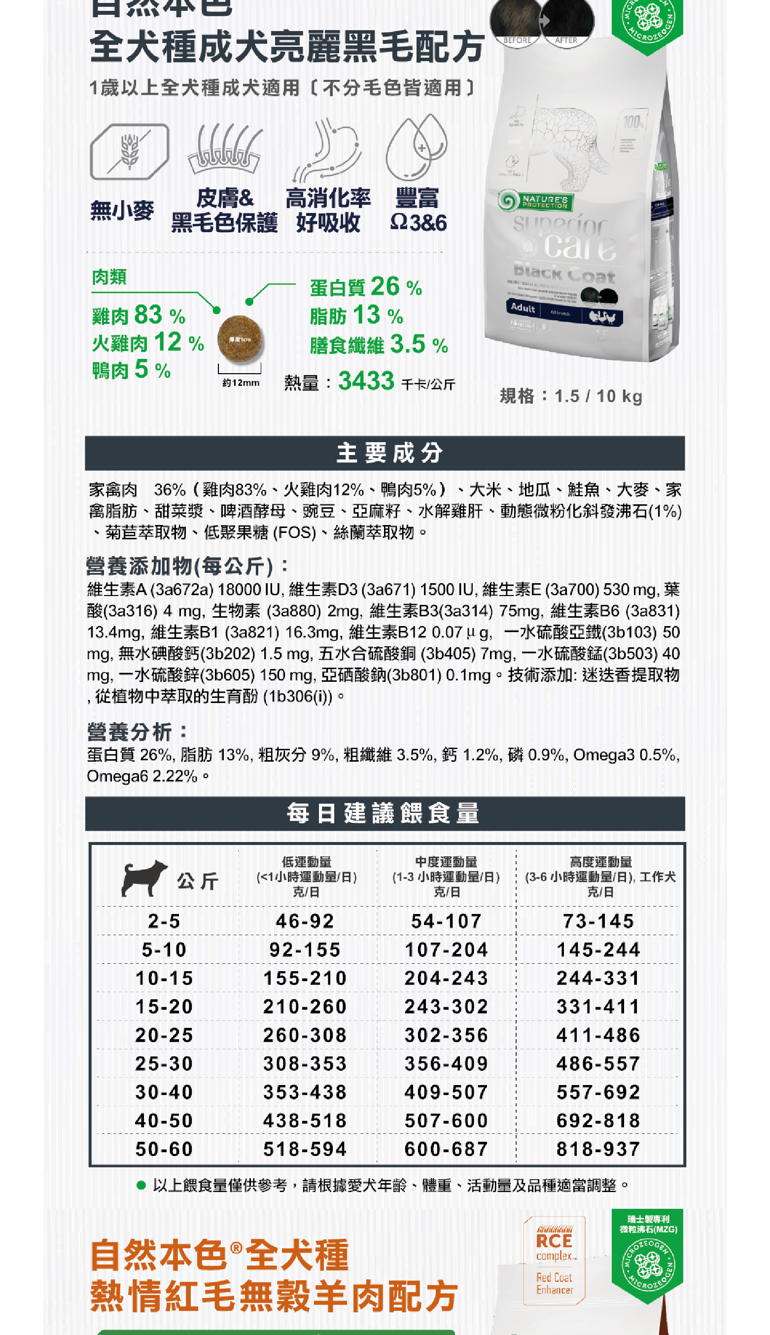 瑞士 NATURE'S PROTECTION 自然本色 全犬成犬-亮麗黑毛家禽肉 1.5kg [F3243]