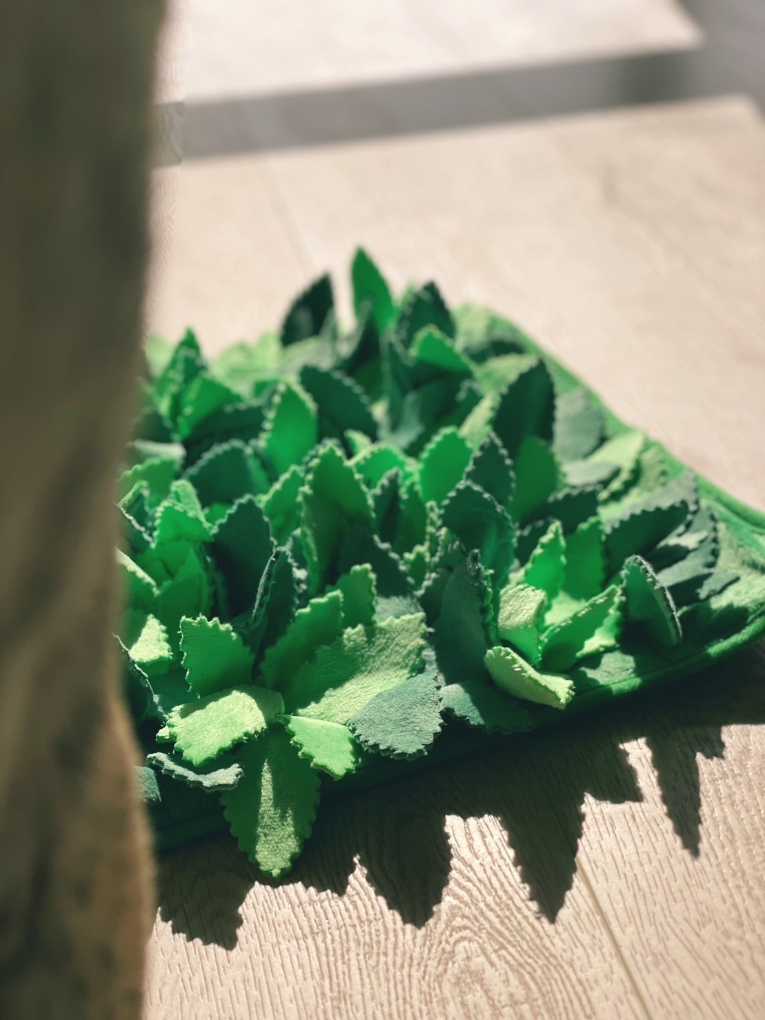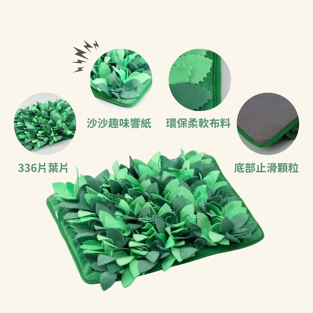 整片草地都有埋藏響紙,毛孩在嗅聞玩樂時會有沙沙聲,增加尋寶食趣,促發興致,讓貓狗欲罷不能!
