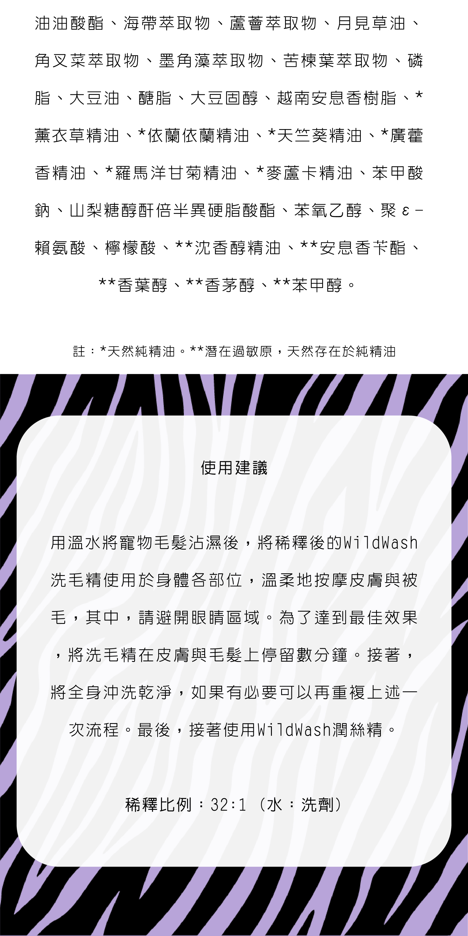 WildWash乾燥皮膚或皮屑配方洗毛精,給予狗狗乾燥與敏感皮膚完整的呵護。