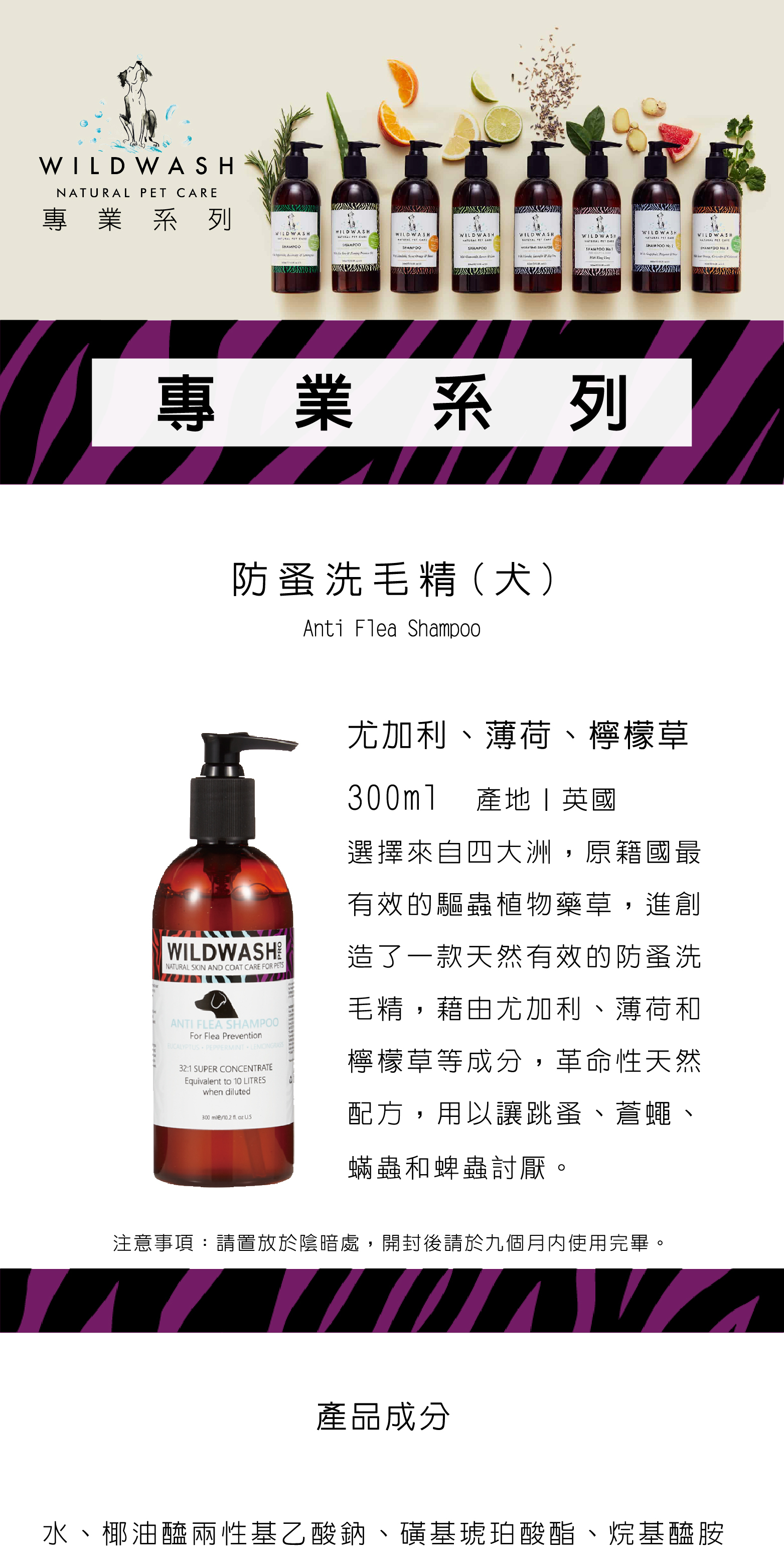 英國 WildWash《防蚤洗毛精(犬)》300ml [C800]