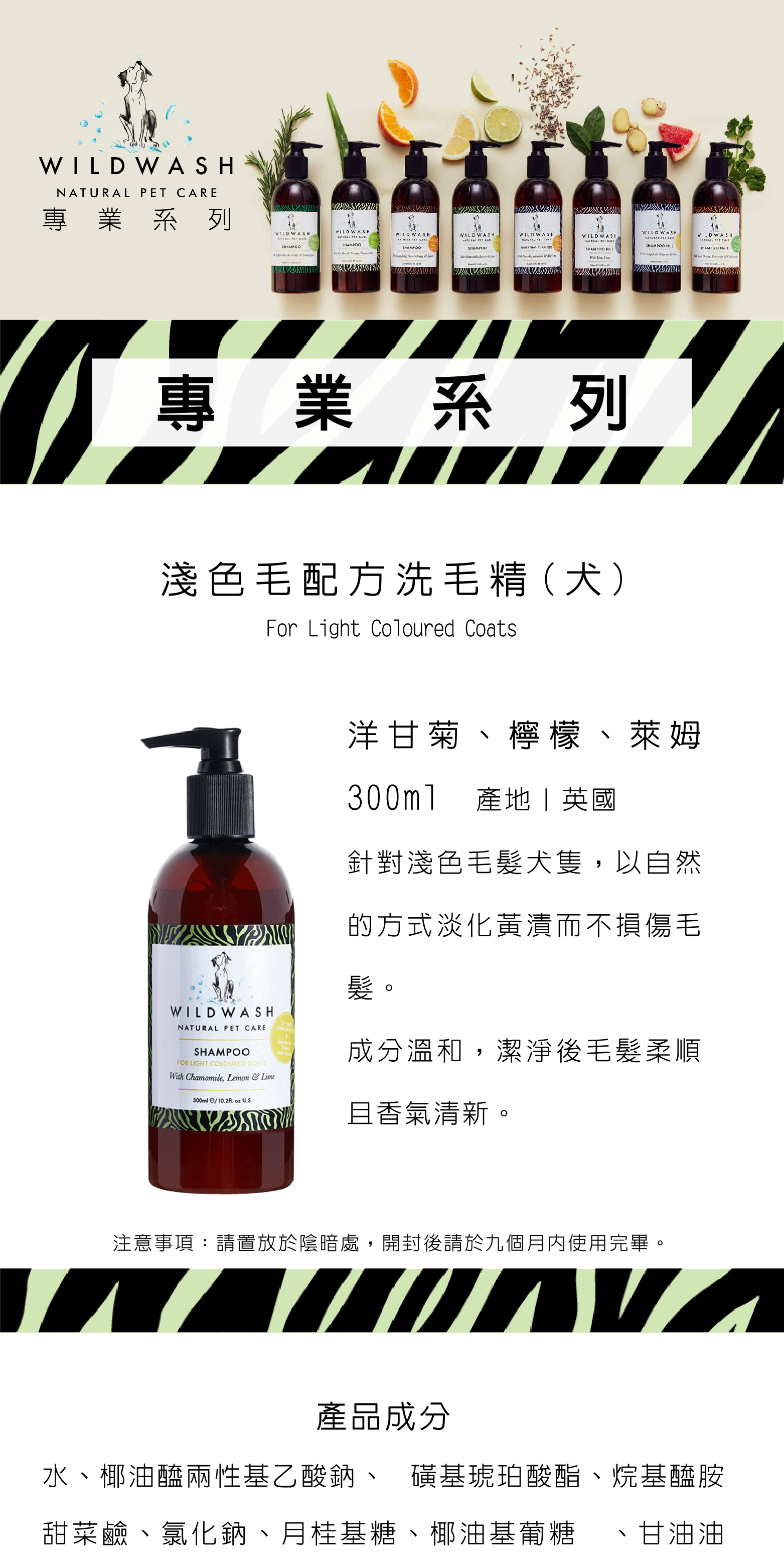 英國 WildWash《淺色毛配方(犬用)》300ml [C800]
