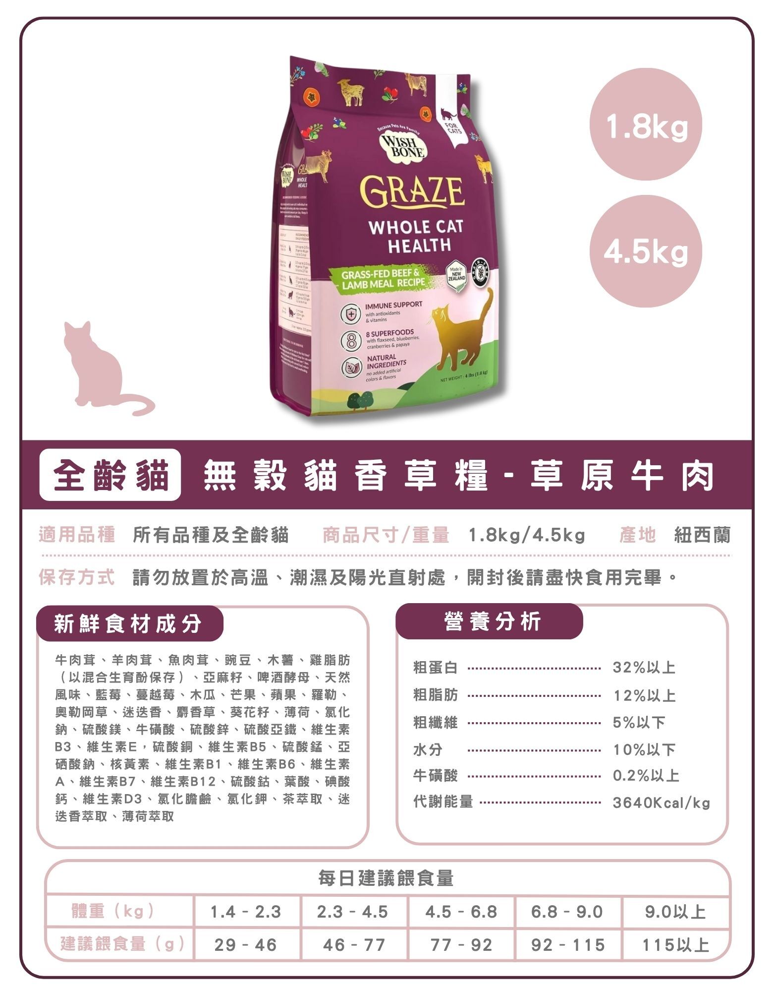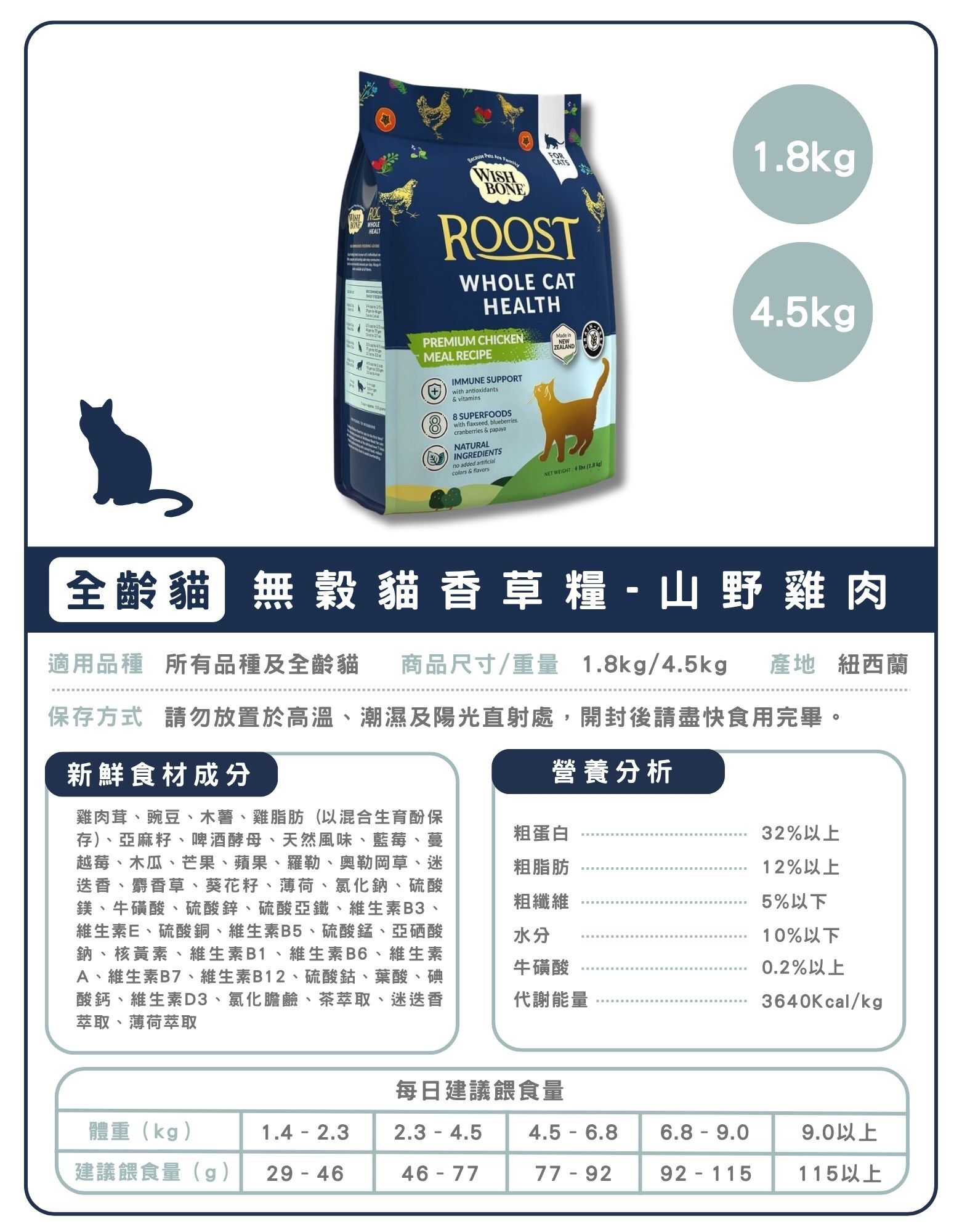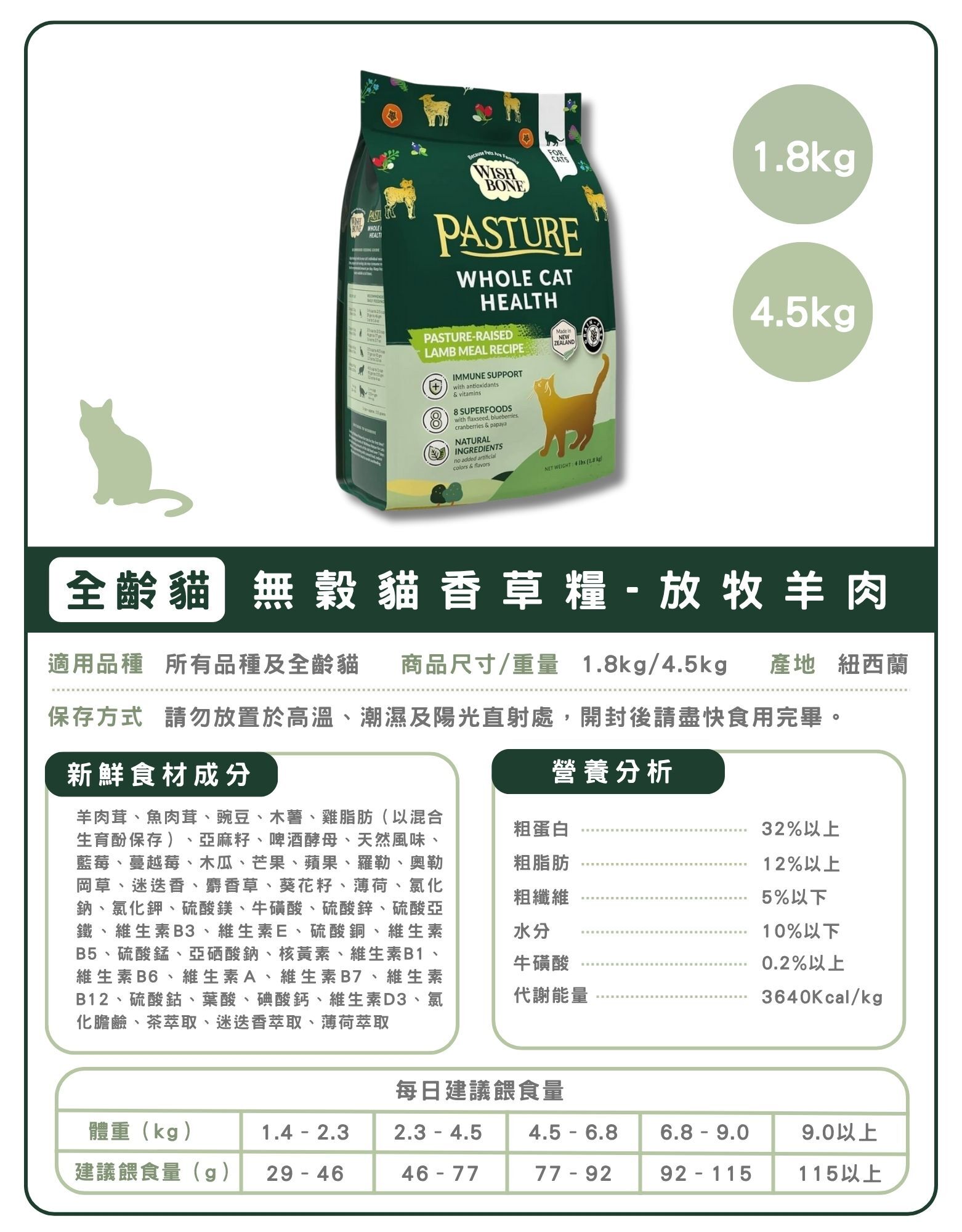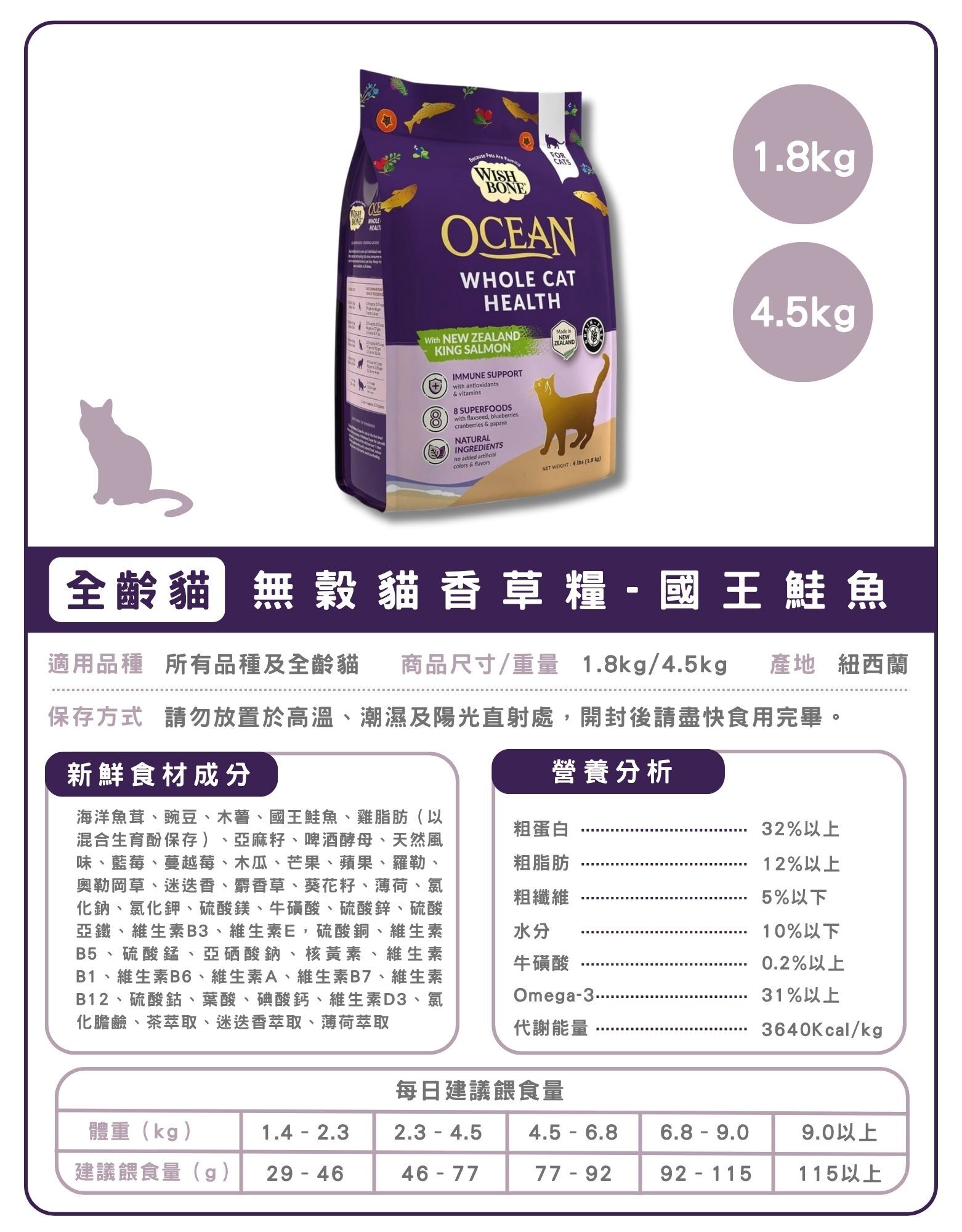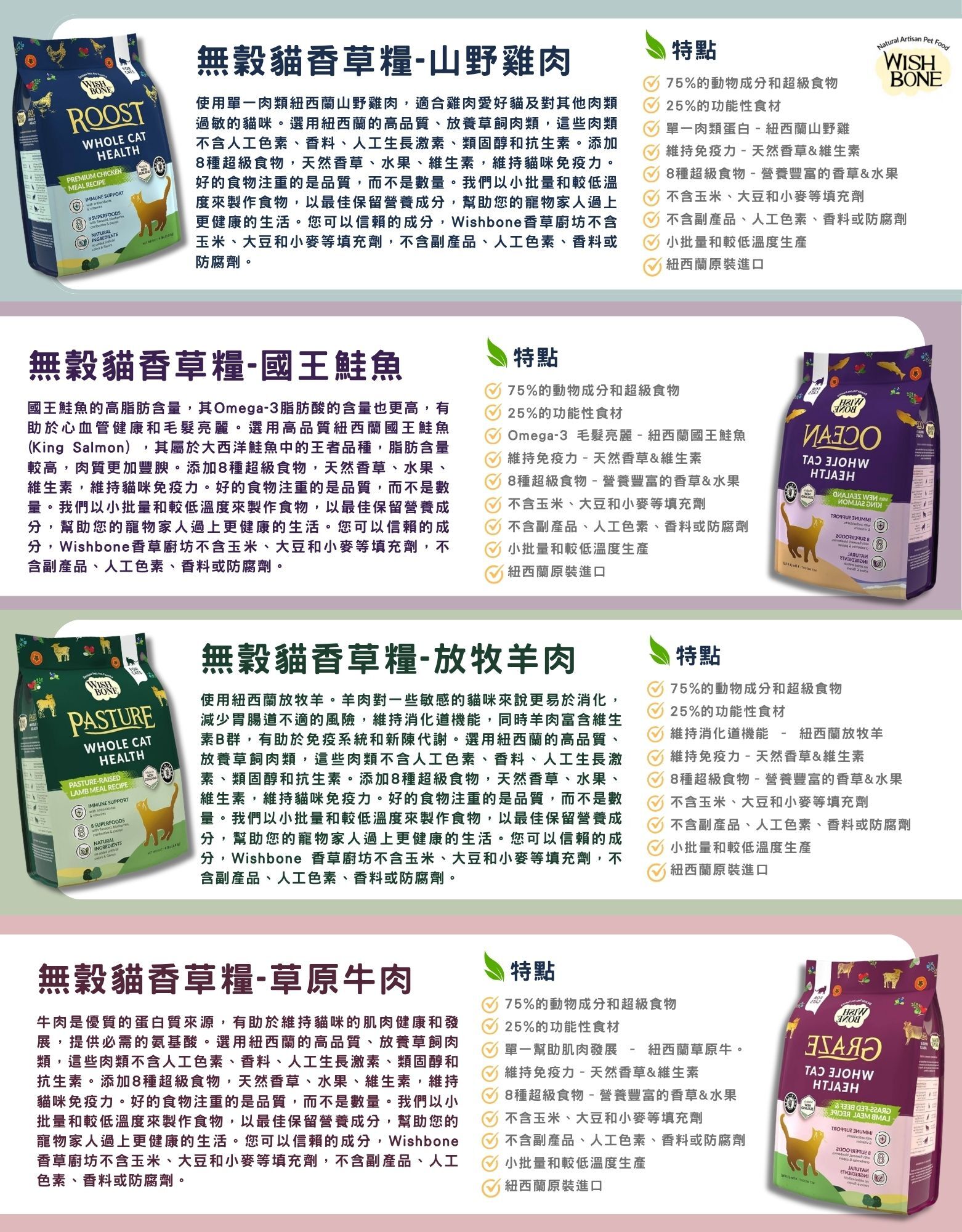 紐西蘭 WISH BONE 香草廚坊 山野雞/國王鮭/放牧羊/草原牛香草糧貓飼料 1.8KG 4.5KG [F203]
