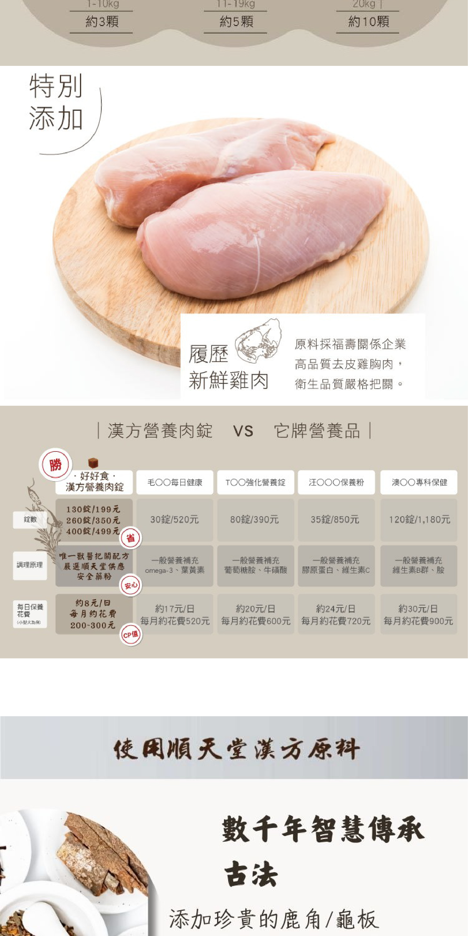 ◎小提醒 肉錠產品有腸胃.關節.皮毛保健, 其主要差異在成分中添加的的"順天堂漢方原料"不同喔.