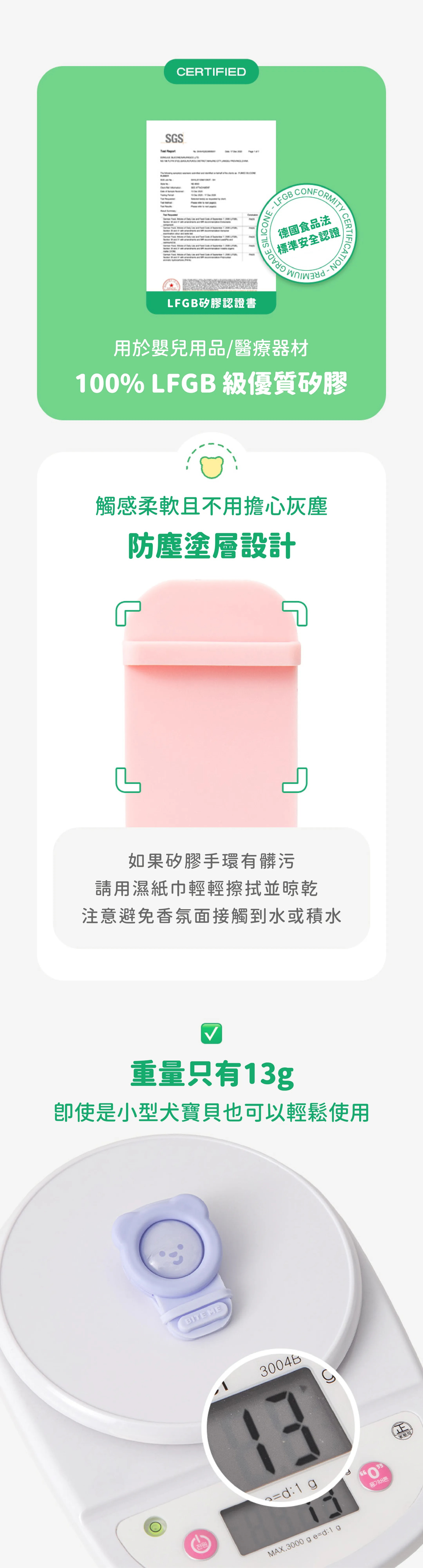 柔軟、輕盈且防滑的矽膠材質讓散步更舒服。