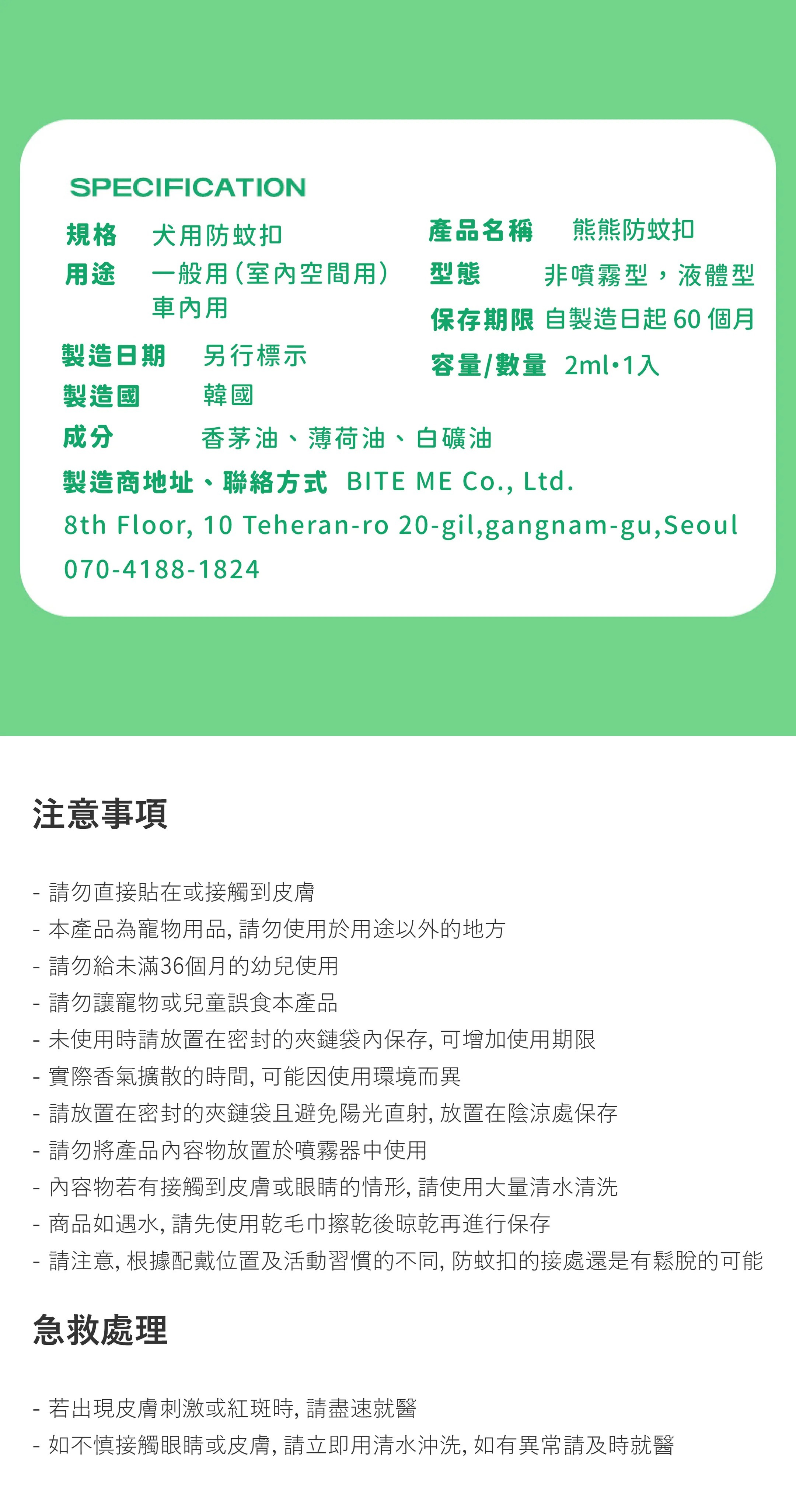 韓國 BITE ME HATE ME 熊熊防蚊扣(四色) [ ]