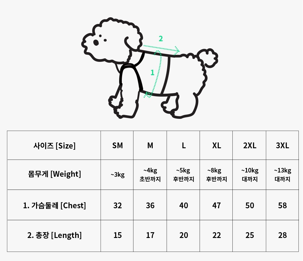 - 此尺寸表是根據該品種的平均體重建立的。