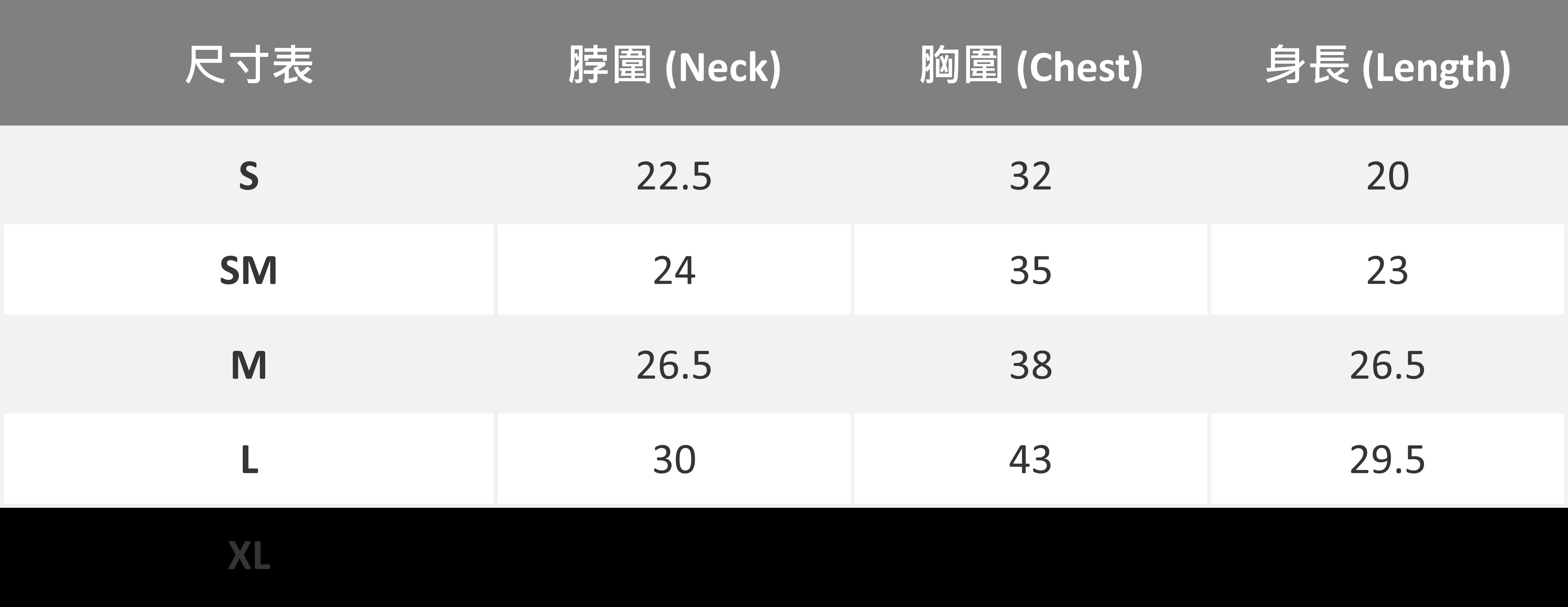 2. 尺寸選擇請以胸圍為主,衣長穿著起來的長度會因版型與狗狗身材而有不同。