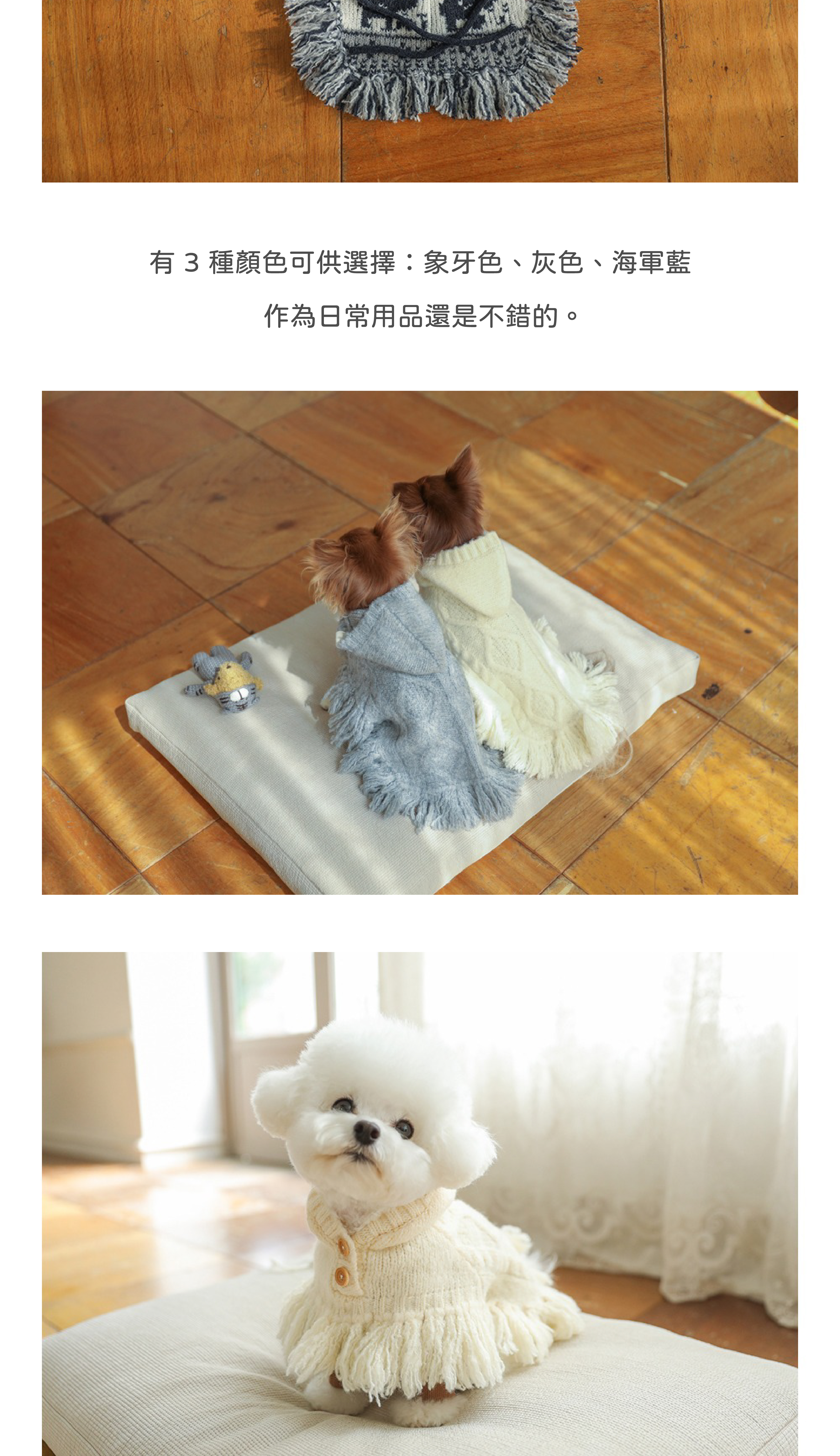 有 3 種顏色可供選擇:象牙色、莫蘭迪灰、海軍藍