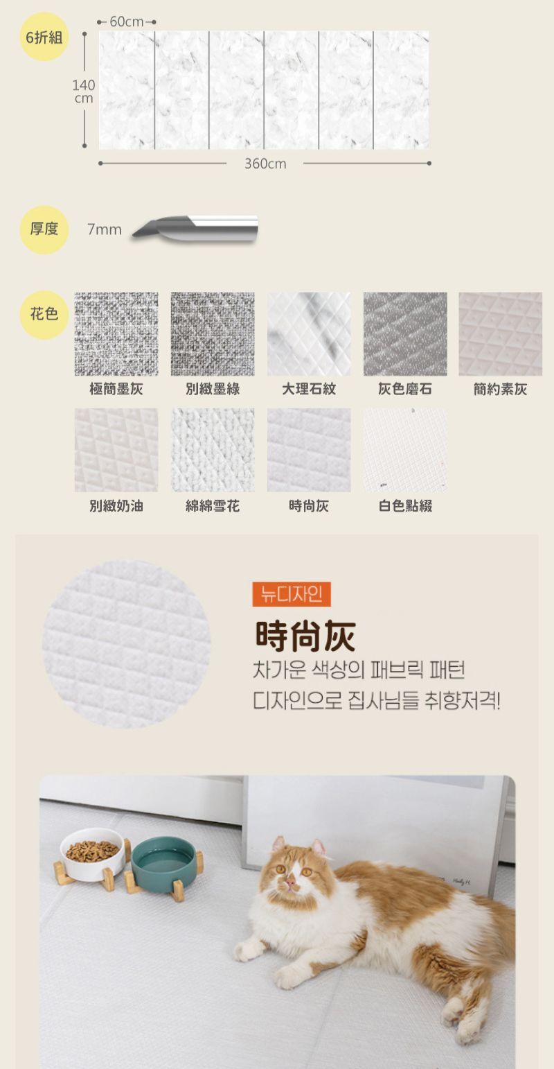 韓國dfang迪邦 寵物降溫遊戲地墊【四折款】- 北歐折線 240x140cm [H588]