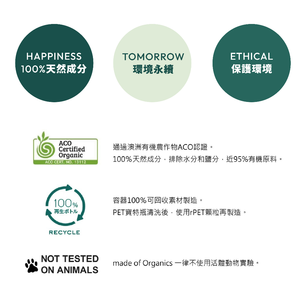 • 含有大量親膚有機蘆薈、有機金盞花等天然植物成分,即使是皮膚敏感的狗狗也可以放心使用。