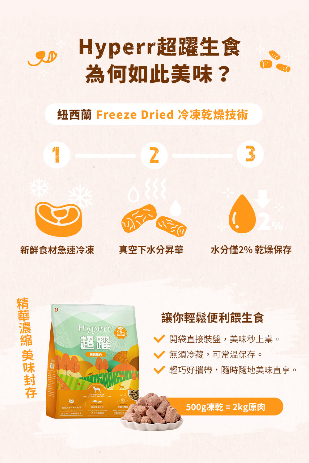 ・98%高含肉量,羊肉保護皮膚基底層,皮毛柔順亮麗