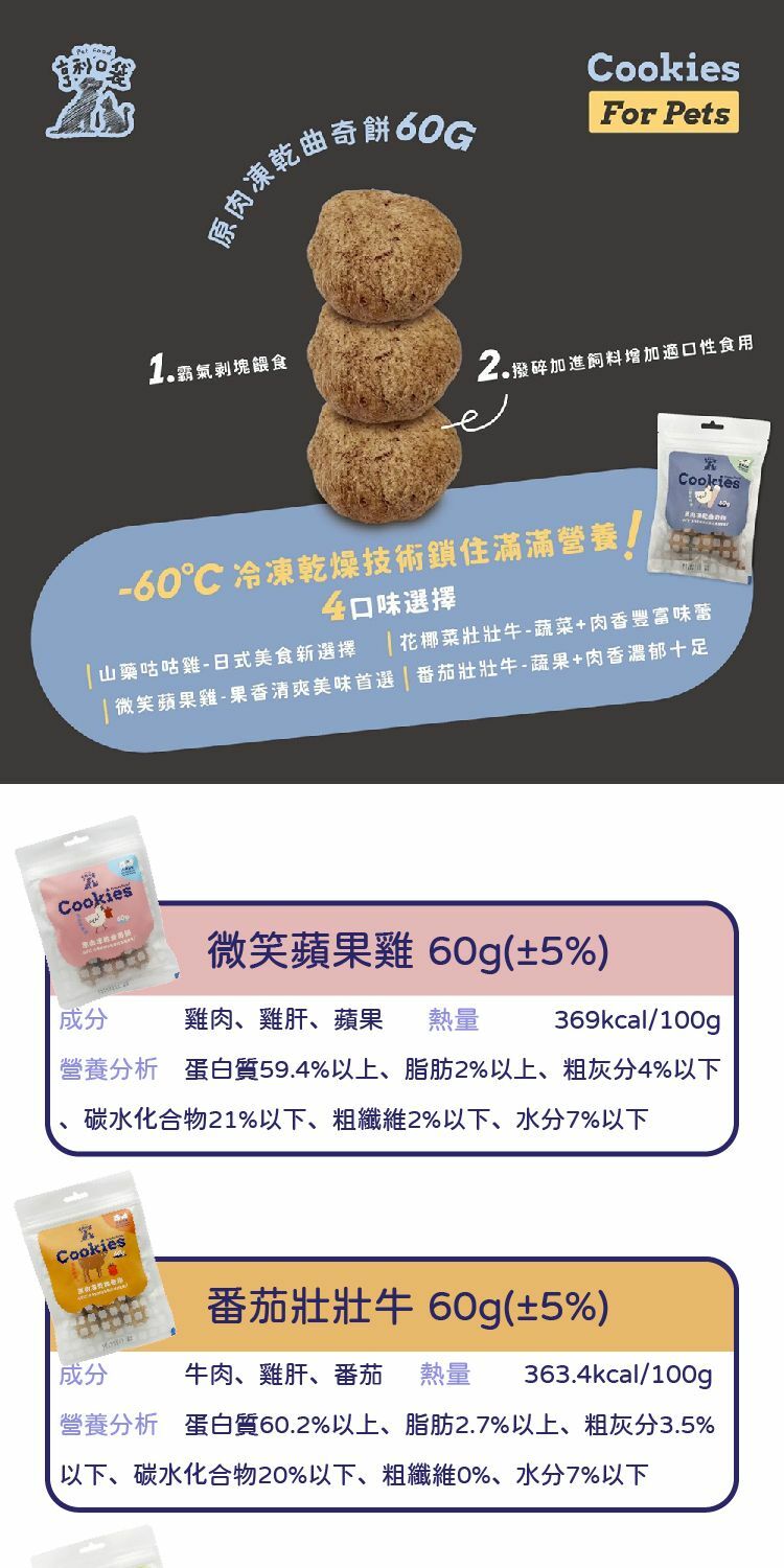 「亨利口袋」原肉凍乾曲奇餅-微笑蘋果雞 60g [S2018]