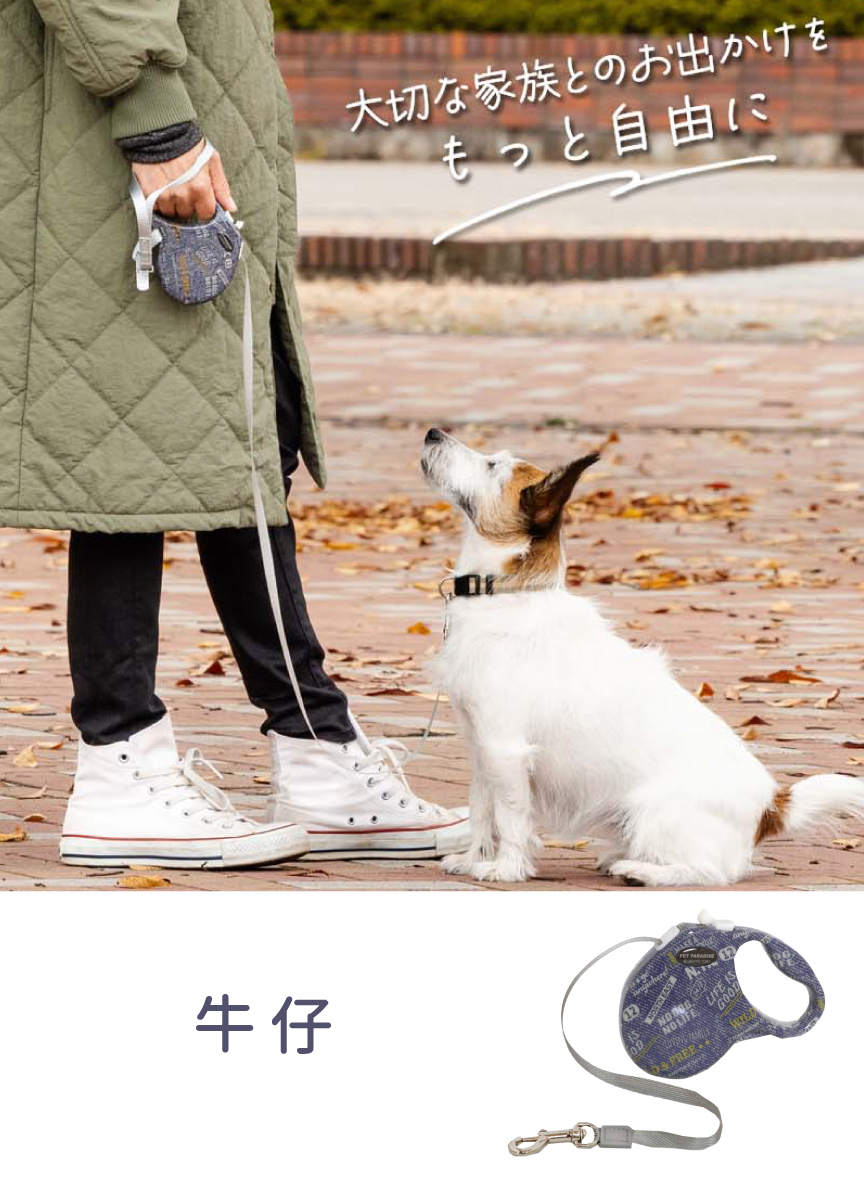 日本 pet paradise 散步用 伸縮牽繩 專用款 -牛仔 [A4833]