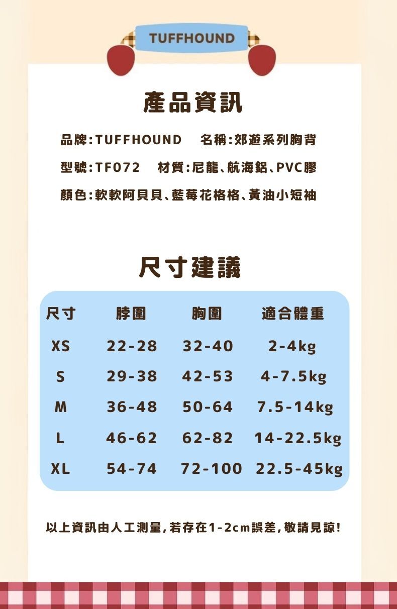 XS:脖圍 22-28 cm 胸圍 32-40 cm