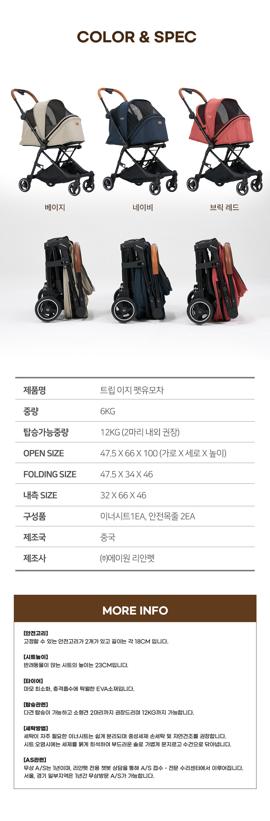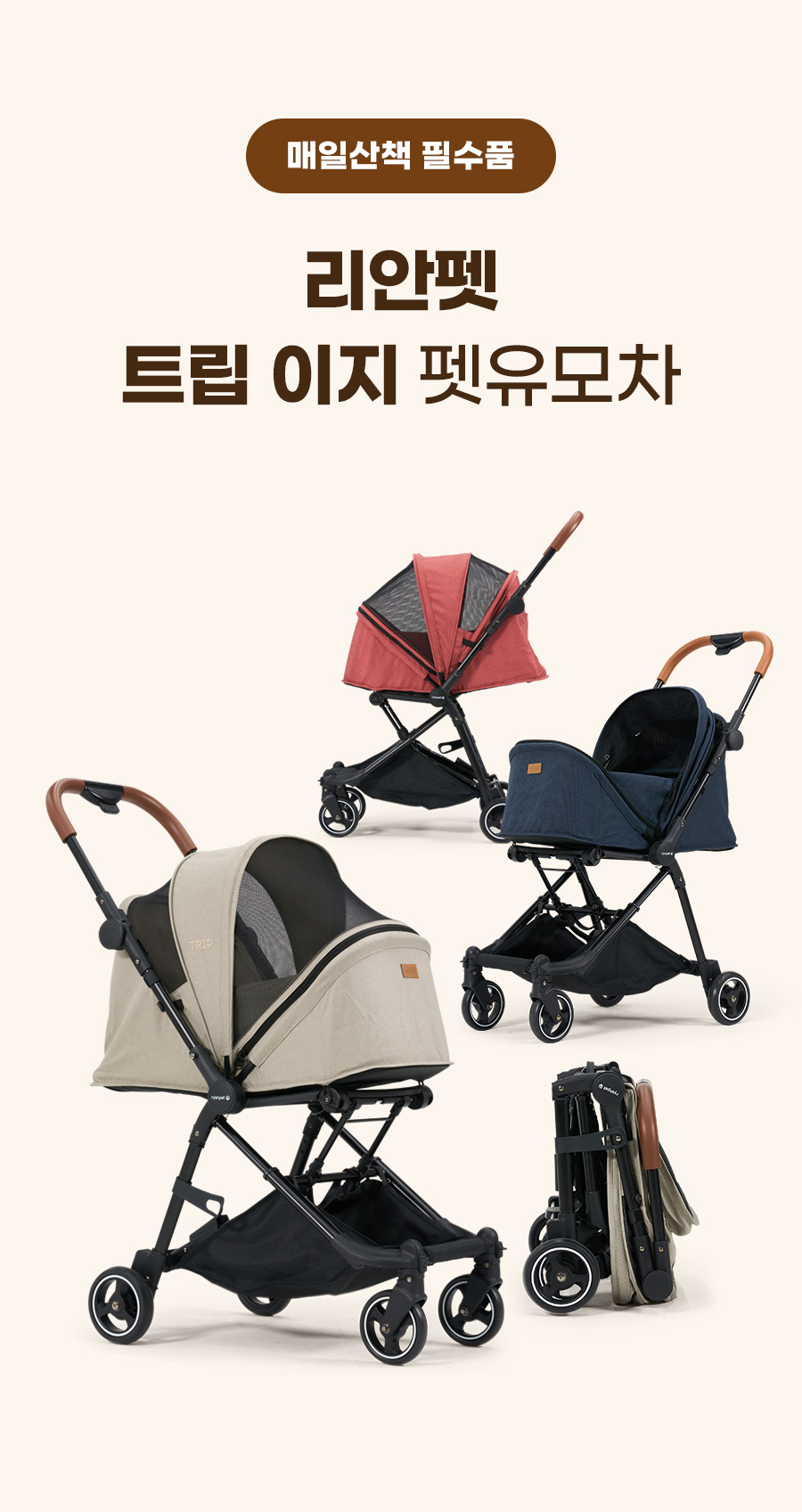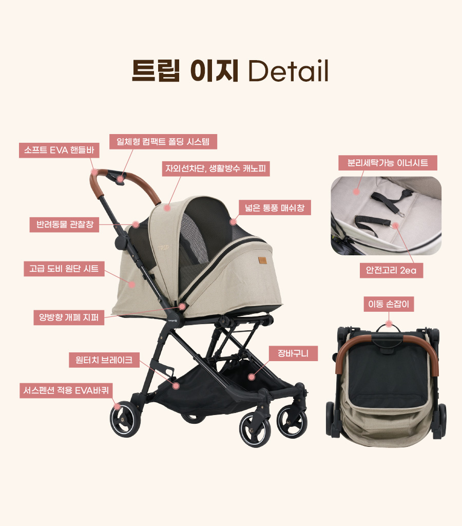 韓國 Ryanpet TRIP可收納式寵物推車(內附配件)- 磚紅色 [R079]