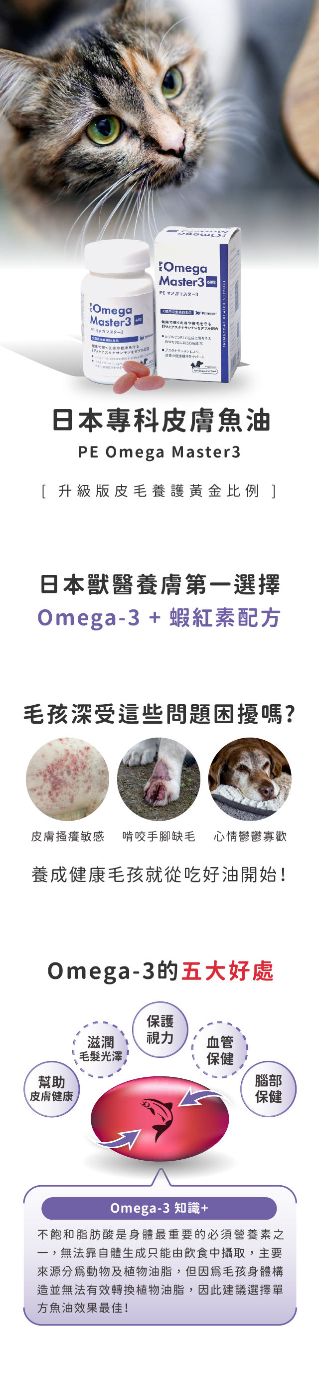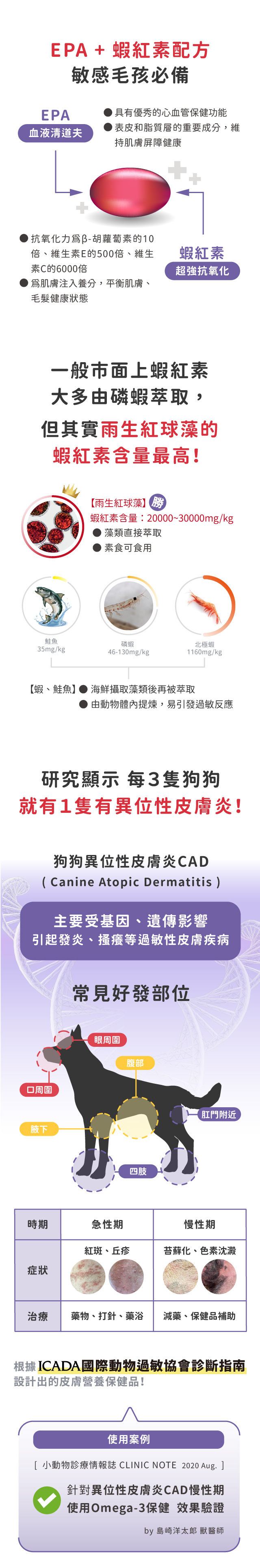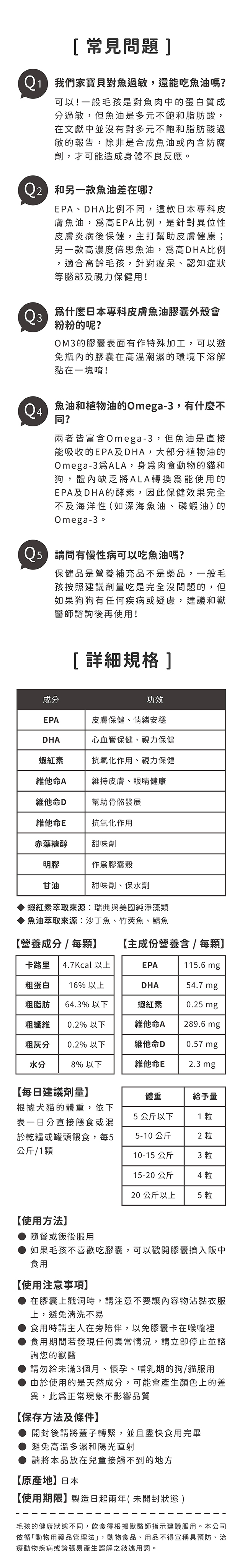 ●日本暨亞洲獸醫皮膚科學會研發【市售唯一做出DHA與EPA比例差距】因應不同狀況之犬貓,精準設計適合的魚油